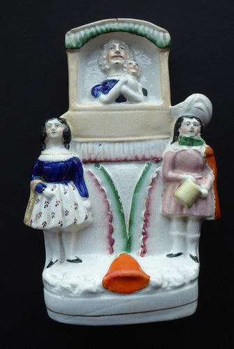 STAFFORDSHIRE Figurine. Very Rare Model of a Punch and Judy Show; Judy and her Baby, c 1850s