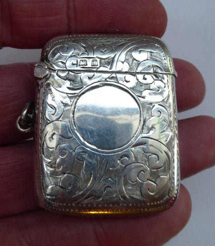 Sweet BIRMINGHAM 1905 Solid Silver Vesta with Profuse Scrolling Decoration. Good Antique Condition