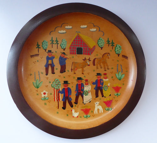 SWEDISH FOLK ART 1930s Wooden Plate. Rare Hand Painted Wedding Plate. Signed with initials and dated 1936 on the reverse