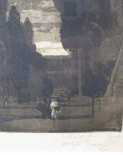 ALFRED EAST (1844 -1913). Rare Original Etching and Aquatint. The Villa D'Este at Tivoli, Outside of Rome. Pencil Signed