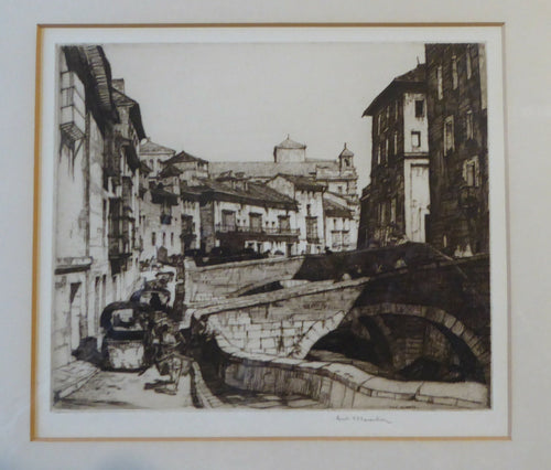 AMERICAN ETCHING. Louis Conrad Rosenberg (1890 - 1983). Carrera Del Darro, Granada. Pencil Signed