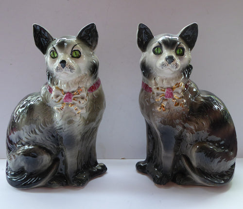 Antique SCOTTISH POTTERY. Highly Collectable Victorian / Edwardian Bridgeness (Bo'ness) Cats, c 1908 (Pink Bows)