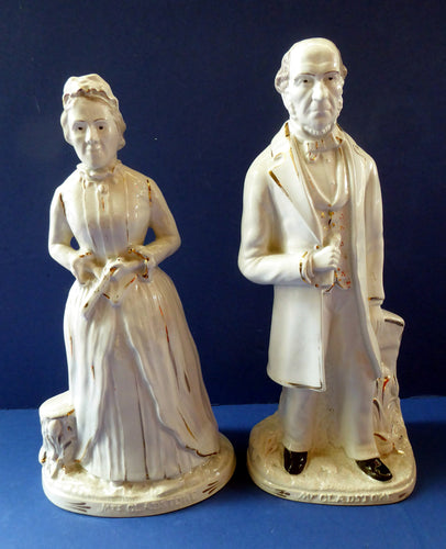 BRITISH POLITICS. Pair of Rare Cast Staffordshire Figures of Mr and Mrs Gladstone. 1890s