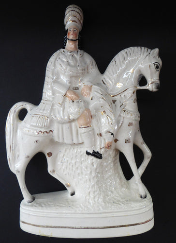 HUGE Antique Victorian STAFFORDSHIRE Figurine. Kilted Scotsman on Horseback. 14 inches height. Great Display Piece