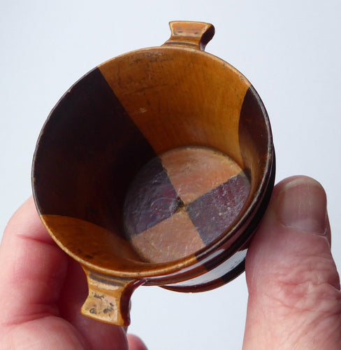 MINIATURE Antique Scottish Banded Treen Luggie or Porringer. Quaich Shape with Two Transfer Mauchline Images