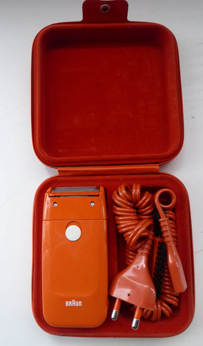 Orange Braun Electric Shaver, 1970s. Complete with original brush & in its own orange velvet lined carrying case