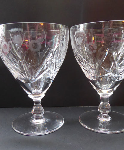 PAIR of EDINBURGH CRYSTAL 1940s Claret Glasses. Each with stylish Older Thistle and Flowers Pattern