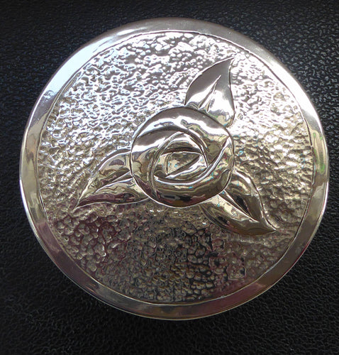 Pretty GLASGOW SCHOOL Lidded Circular Box with Glasgow Rose Motif. In the manner of Margaret Gilmour