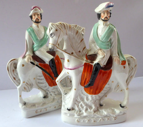 Rarer PAIR of Antique Staffordshire Figures: Colonel Peard & Garibaldi. Unification of Italy Historical Interest; c 1860