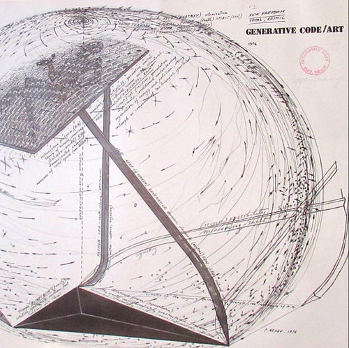 LARGE 1976 Poster for Generative Code Art Exhibition by PAUL NEAGU. Signed in pencil.