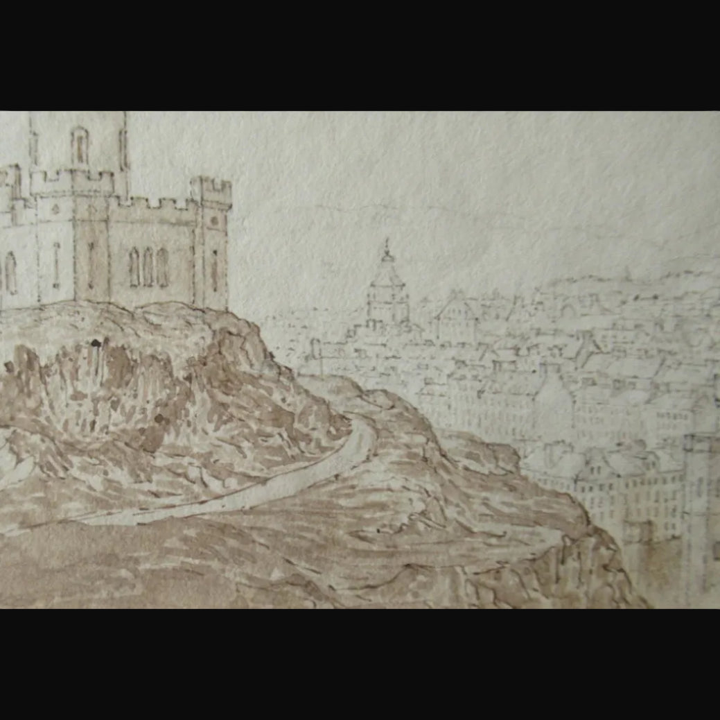 This is an interesting and rare little pen and ink study of Edinburgh from Calton Hill. It is now over 200 years old.