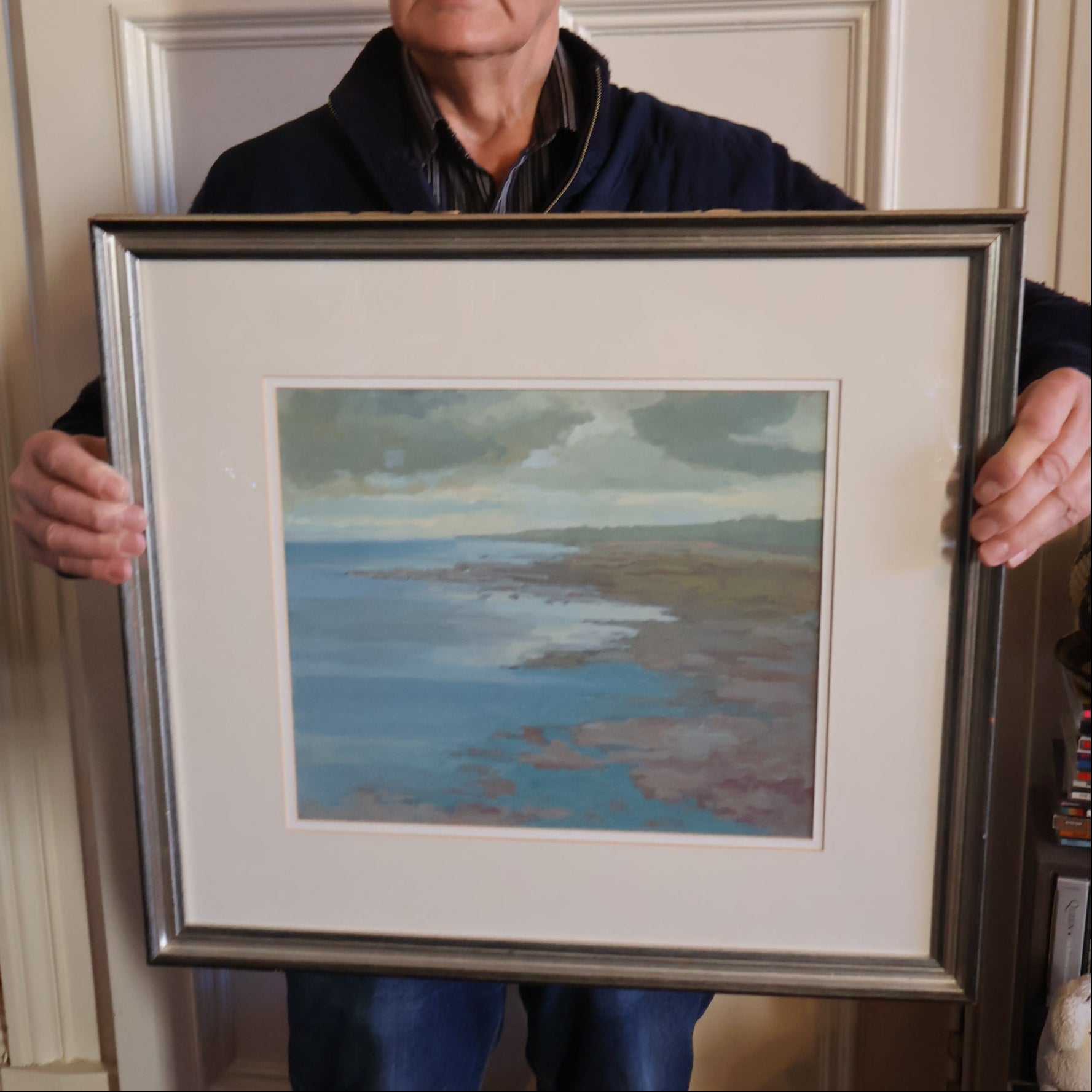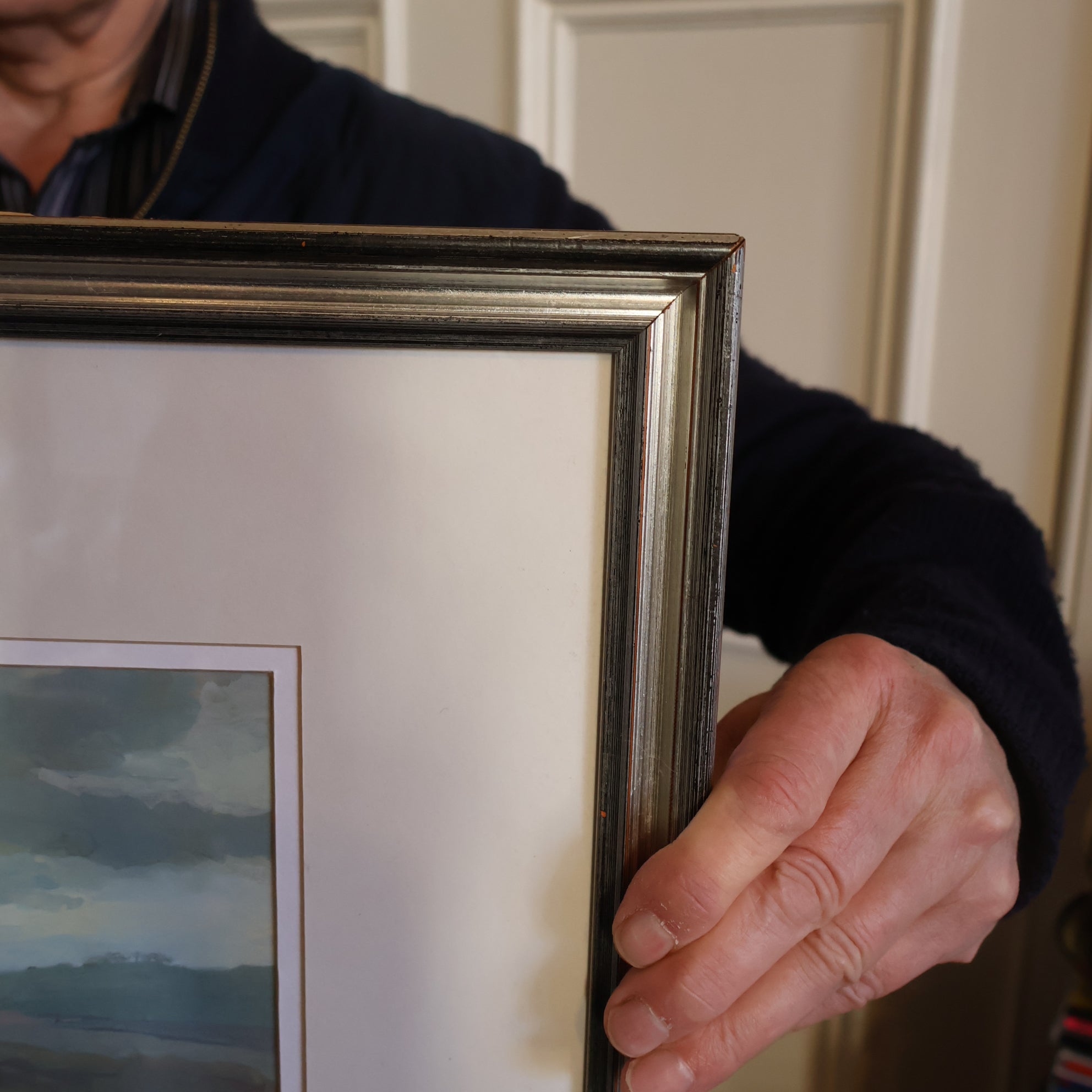 It is well presented with a heavy wooden frame with black and silver highlights, as photographed. It is ready to hang on your wall. It was very tricky to photograph all the subtle colours - and I hope that my photographs do it justice.
