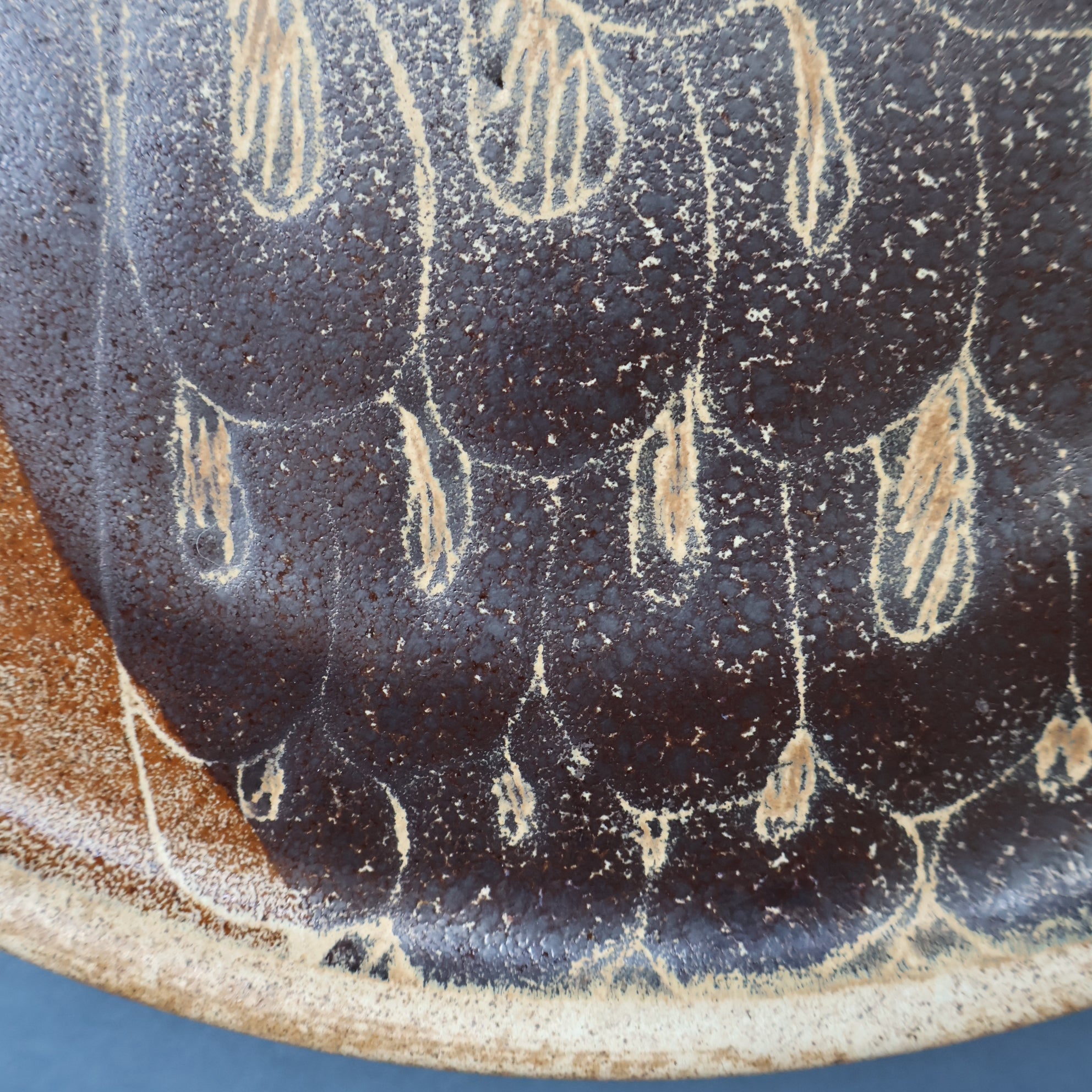 STUDIO POTTERY. Large Plate or Platter with Abstract Floral Motifs. Crich Pottery (Diana Worthy). 10 1/2 inches diameter