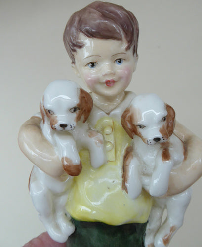 Royal Worcester Figurine. ALL MINE. Modelled by Freda Doughty. No 3519. Boy Holding Puppies. PRISTINE