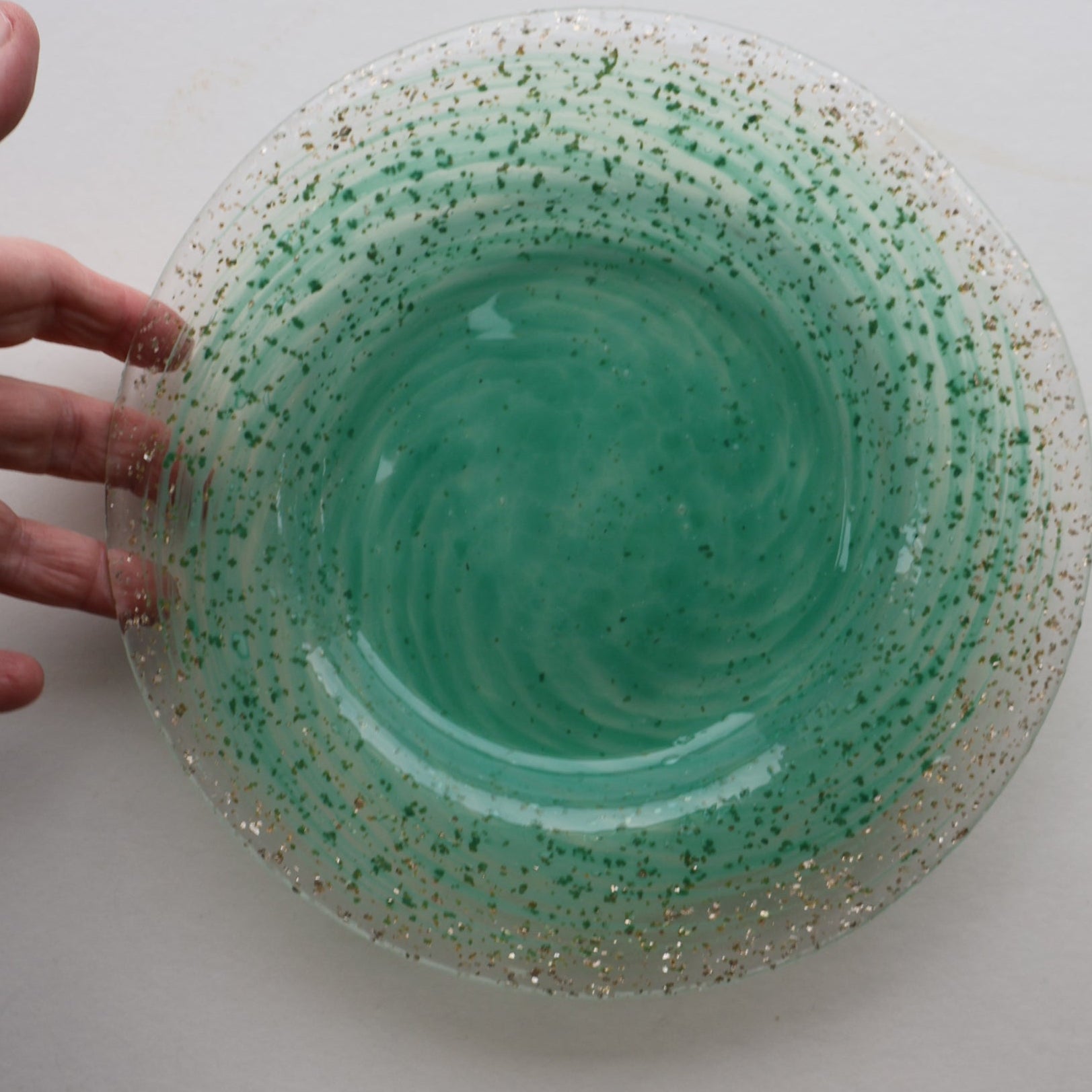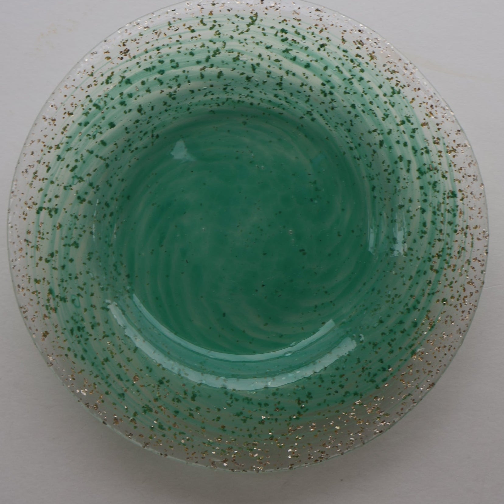 This is one of three pretty little vintage 1930s Scottish Monart Glass plates that I have in my online store. They are listed as (A), (B) and (C). They look good together, but being handmade there are slight differences in each one.
