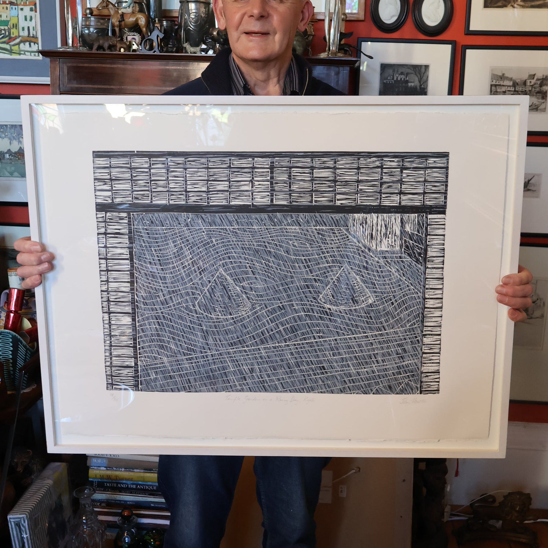 This is a stunning large original woodcut. It was made by the Scottish artist, John Houston (1930 - 2008).