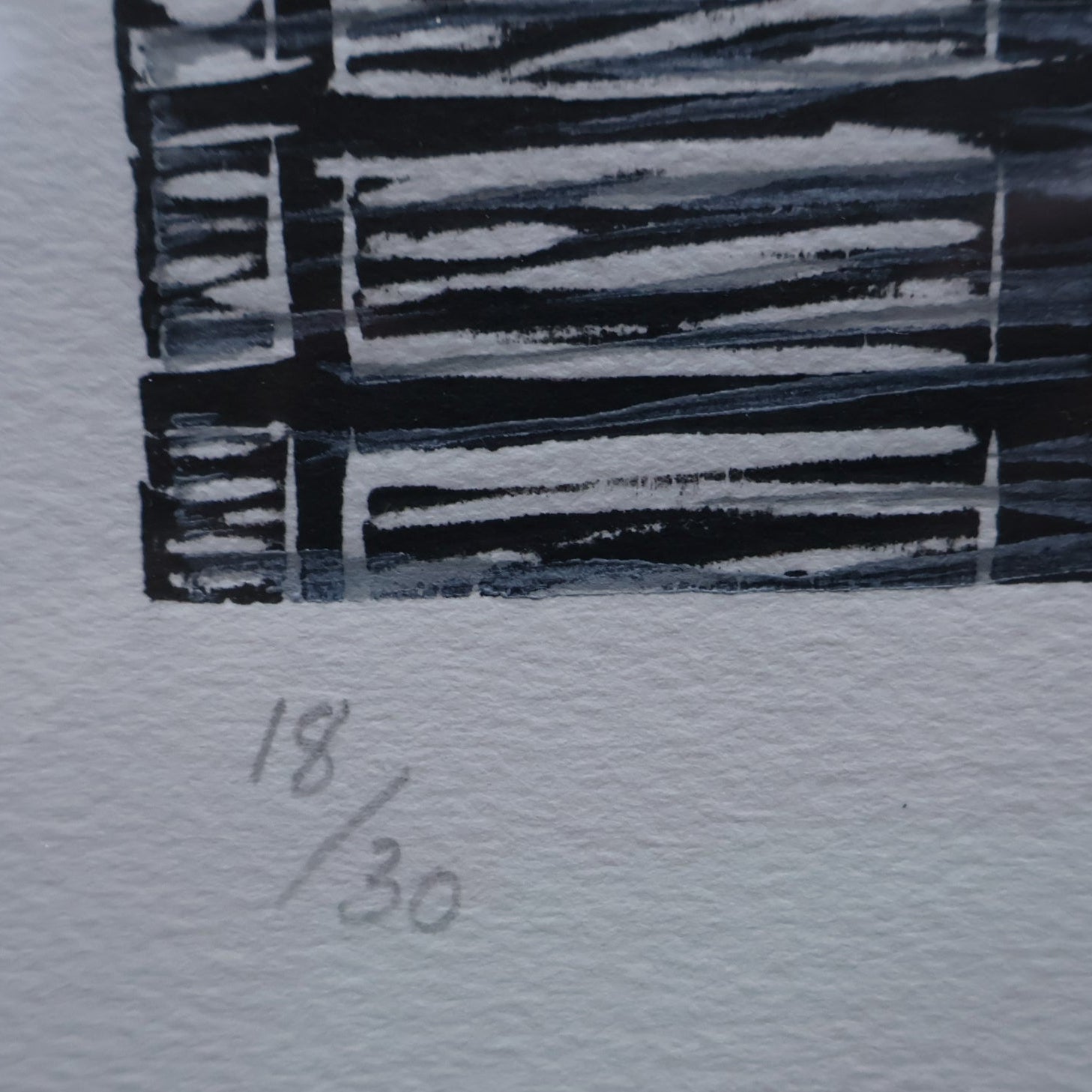 It is signed and inscribed with the title and numbered 18 out of a very low edition run of only 30 prints. It is signed in pencil on the lower margin,