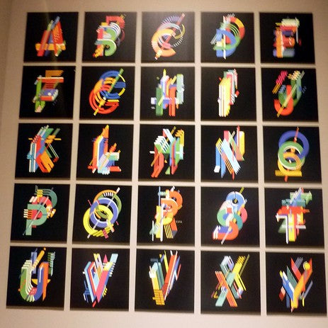 It is triangular in form with different stylized letters on each side, as photographed. The top of each side is arch shaped. I love all the lettering - with its strange shapes and dynamic colours. It was designed by the Italian Constructivist artist Marcello Morandini and dates to the late 1980s. We were quite taken by the display of his works at the Gallery of Modern Art in Rome - and have added a couple of images to my listing of us admiring his works - including a full alphabet which was on display there.