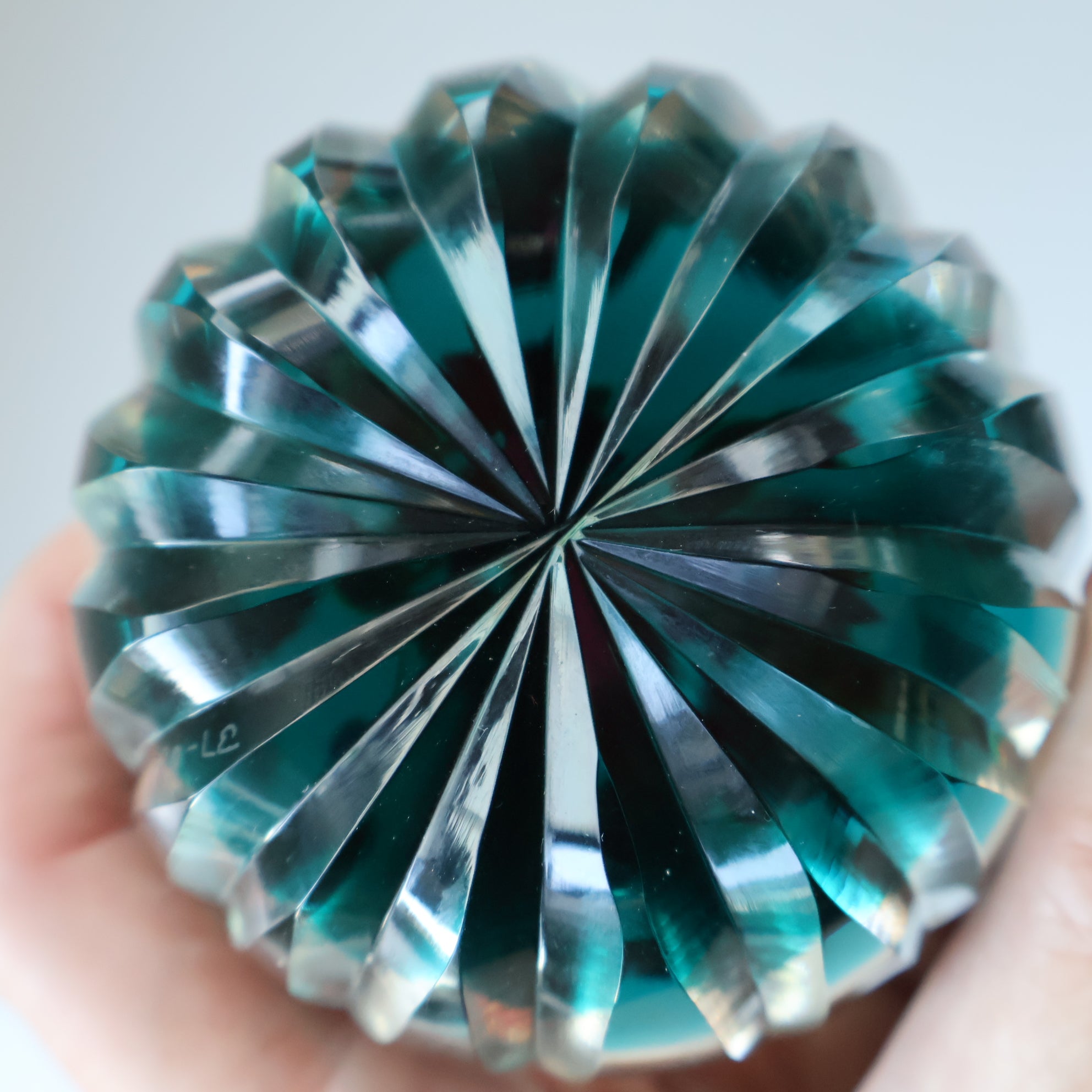 As previously mentioned - both my bottle and paperweight do not have a CG cane - so I am suspecting that they were made by Caithness / Whitefriars just after the transition period and that it is actually Scottish in origin. One of the facets on the base is numbered 37 / 50. This is the same on my bottle.