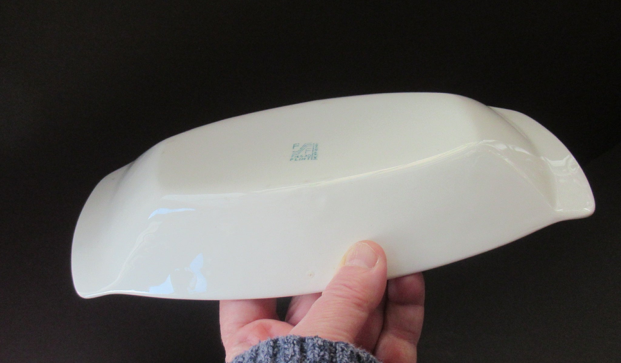 This is an attractive mid-century modern Scandinavian ceramic sandwich plate or shallow serving dish.