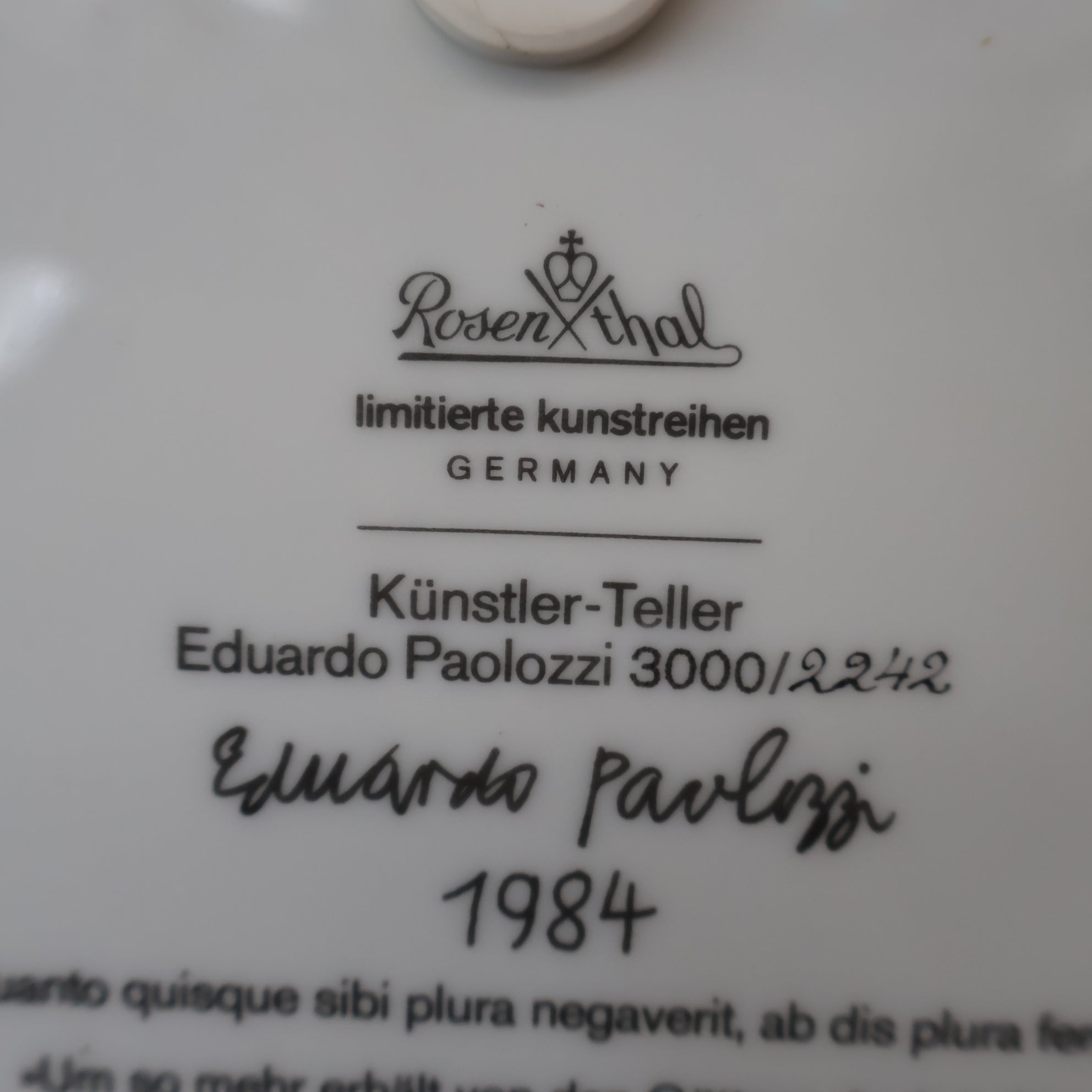 It is nice typical Paolozzi pop-art inspired plate and would good on display in a modernist interior. It is in perfect condition with no damage. It is unboxed - my price takes this into consideration - and it is listed at a very fair price.