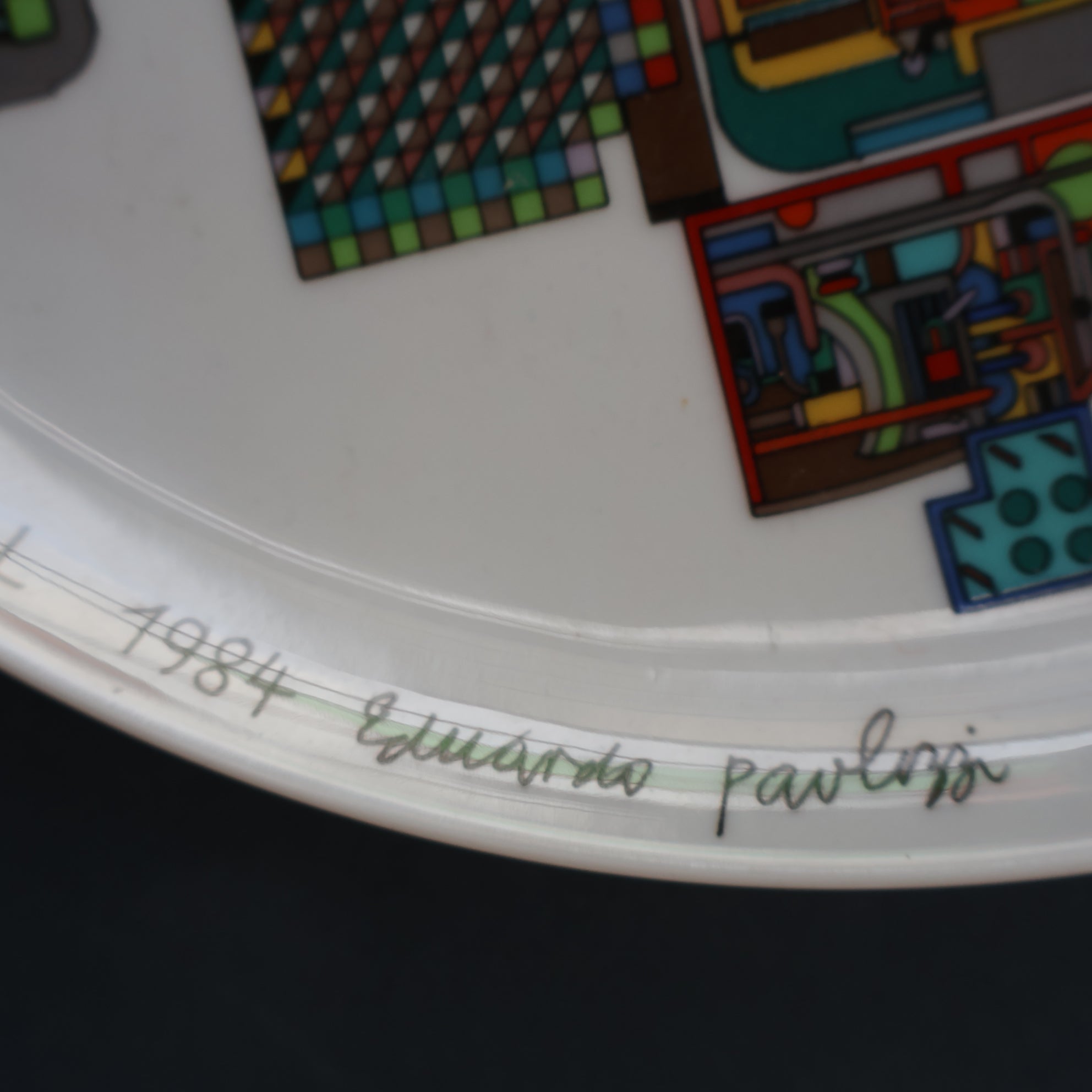 This is an attractive decorative wall plate or charger designed by the Scottish pop artist and sculptor, Eduardo Paolozzi (1924 - 2005) for Rosenthal.