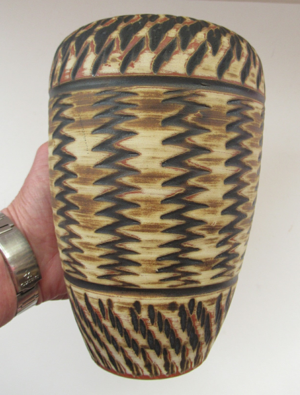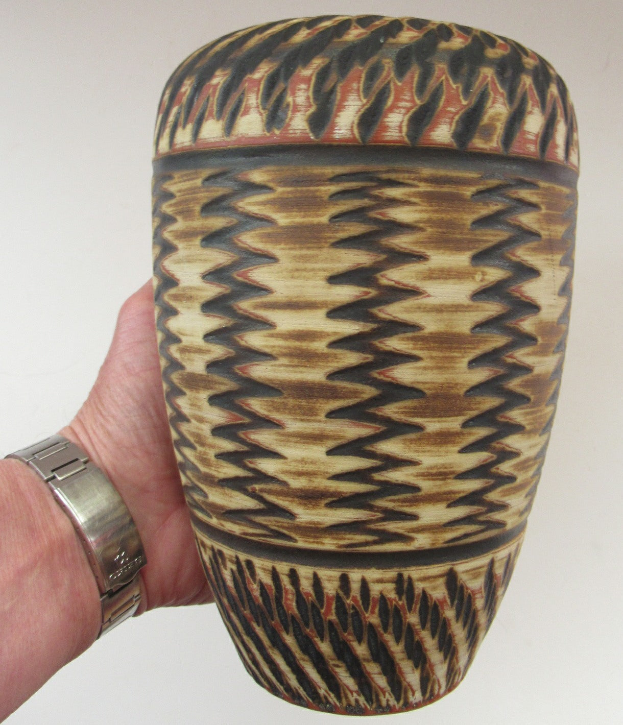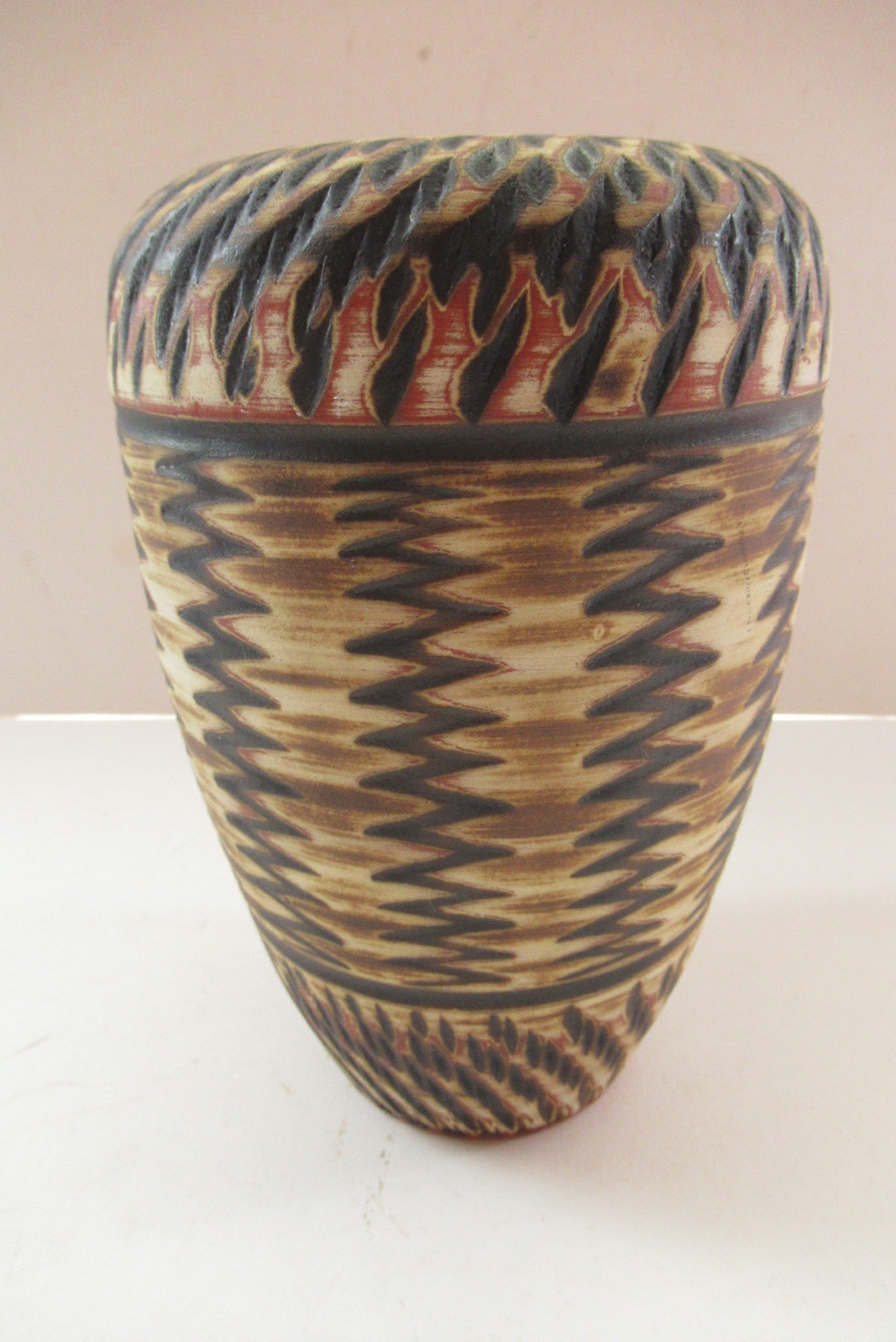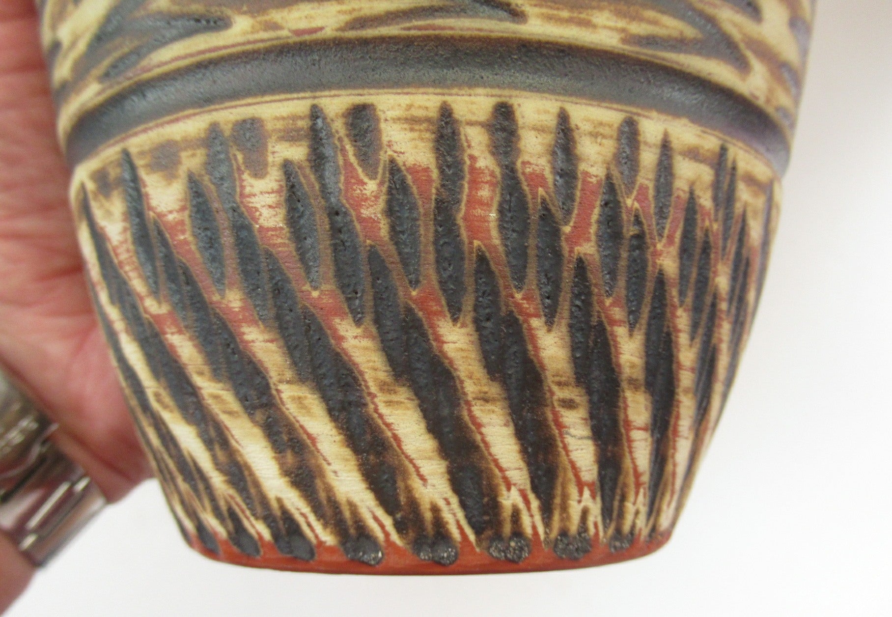 This is an interesting 1960s / early 1970s Sgraffito terracotta vase.