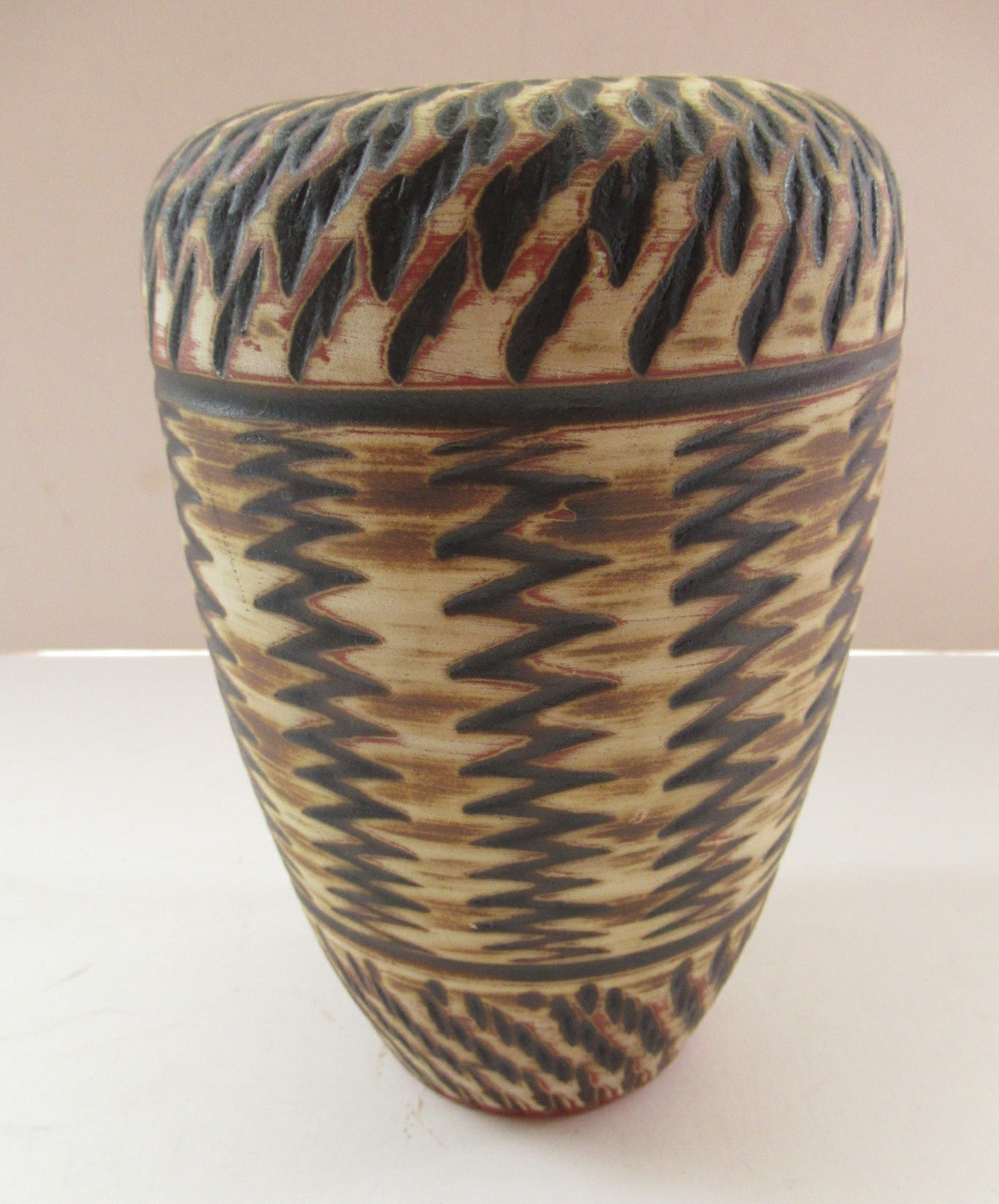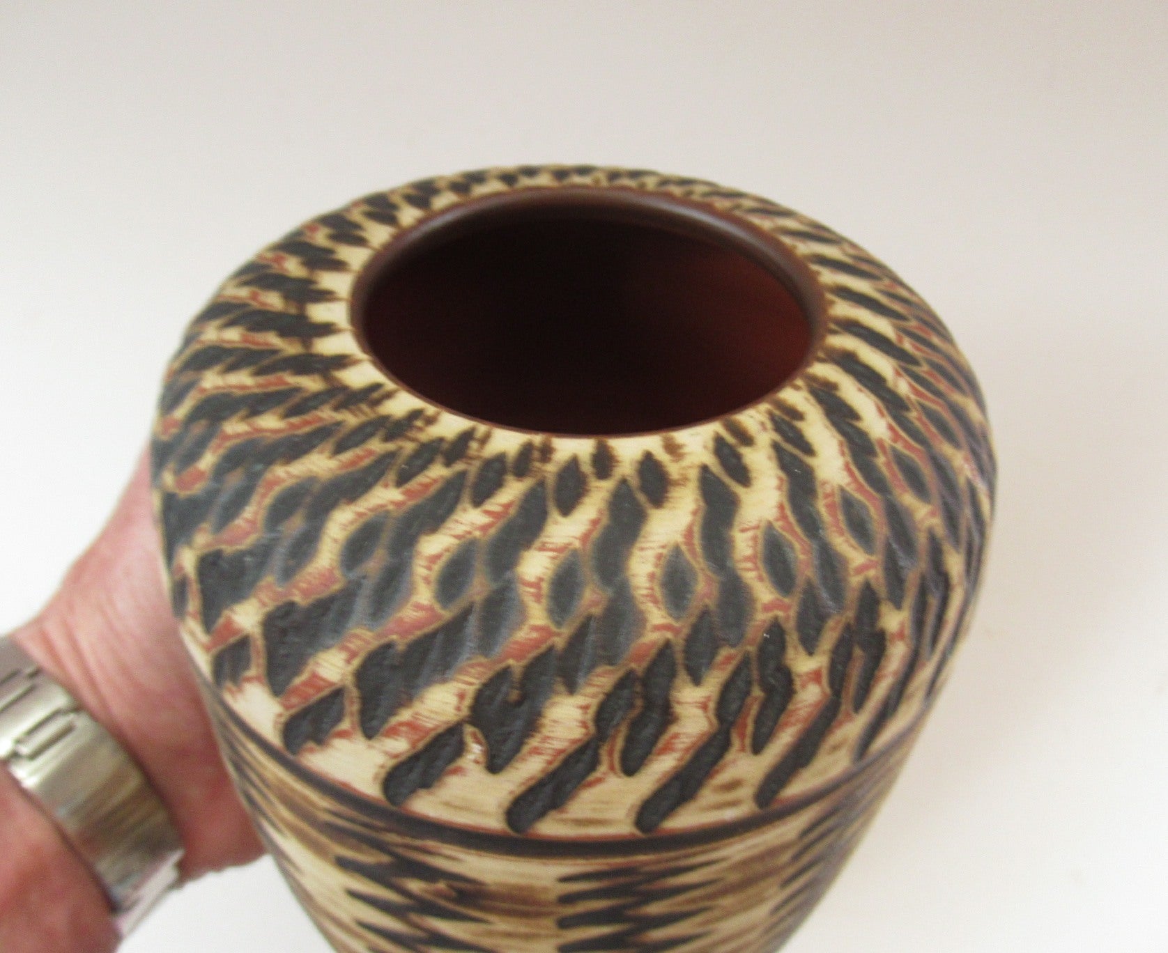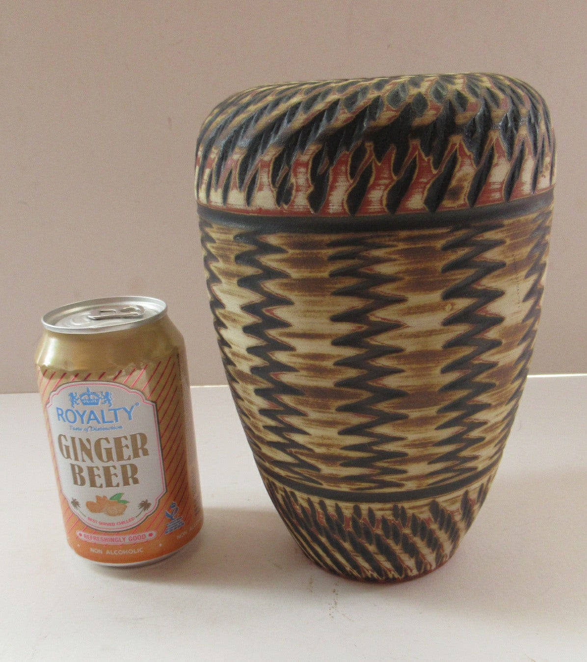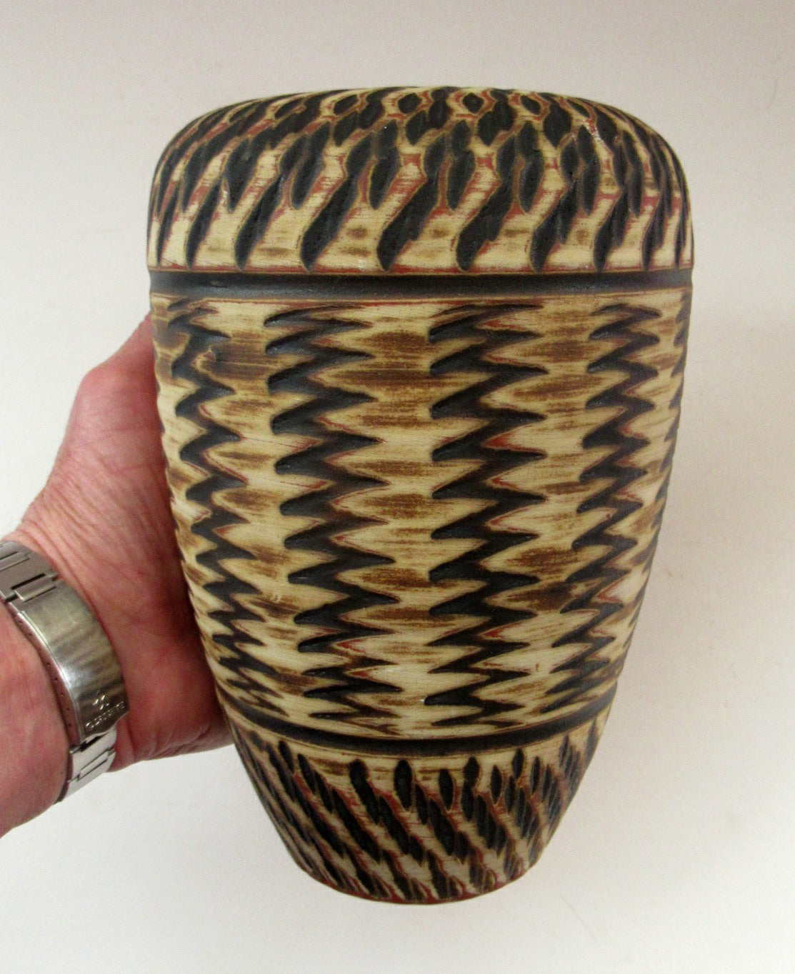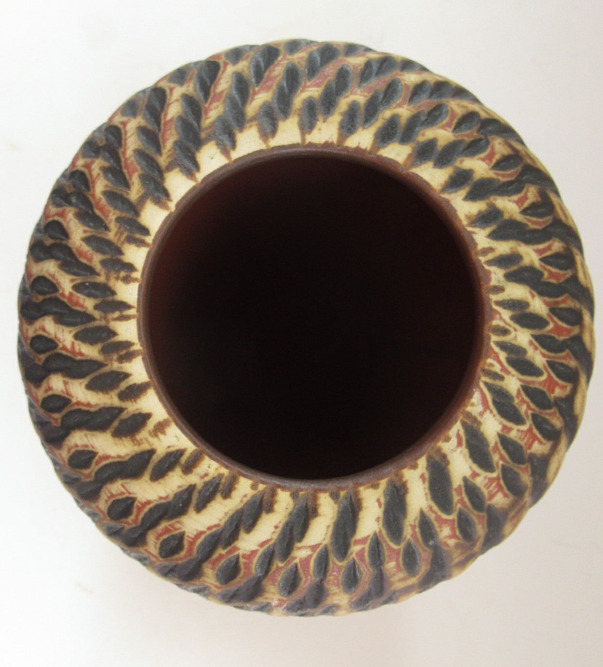 This is an interesting 1960s / early 1970s Sgraffito terracotta vase.