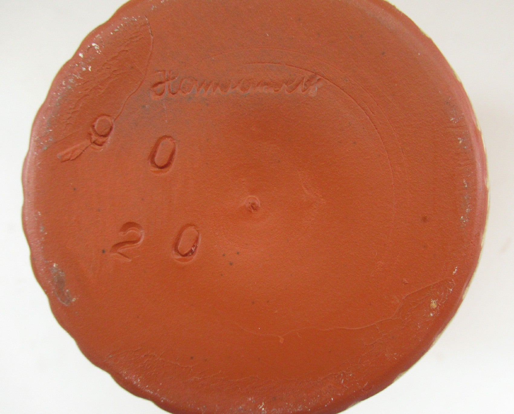 It has a mark on the base which I think is the German word for Handmade - it also has two incised numbers - which you often find on West German Wekara ceramics. The numbers are 90 and 20.