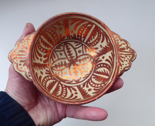 Old HISPANO-MORESQUE Copper Lustre Bowl with Lug Handles