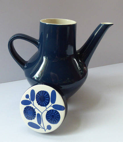 German 1960s MELITTA Blue Sunflowers PORCELAIN Coffee Pot. Designed by Lilo Kantner