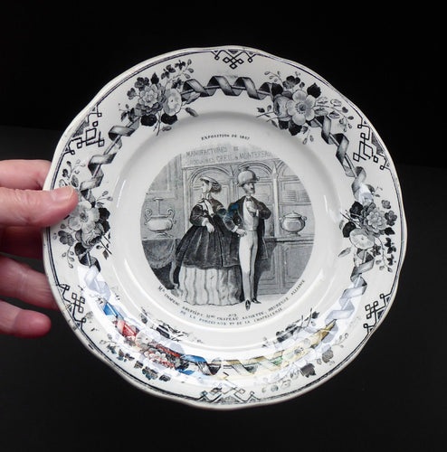 Rare 1867 Antique French Plate: Comical Image of English Visitors to the Paris Exposition Commemorative 1867.