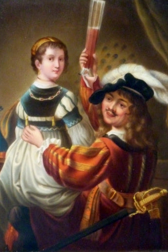 Rembrandt and Saskia ANTIQUE German Porcelain painted PLAQUE. KPM Berlin Style