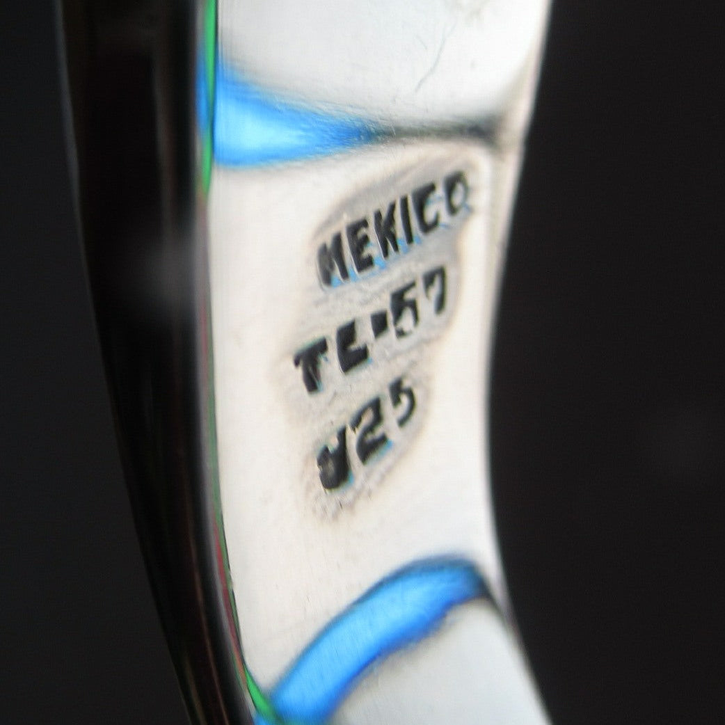 It is marked inside with maker details as photographed. I hope that my photographs do it justice. It is a fair price for a piece of Mexican Taxco vintage jewellery - with so much silver in it and also the unusual design.