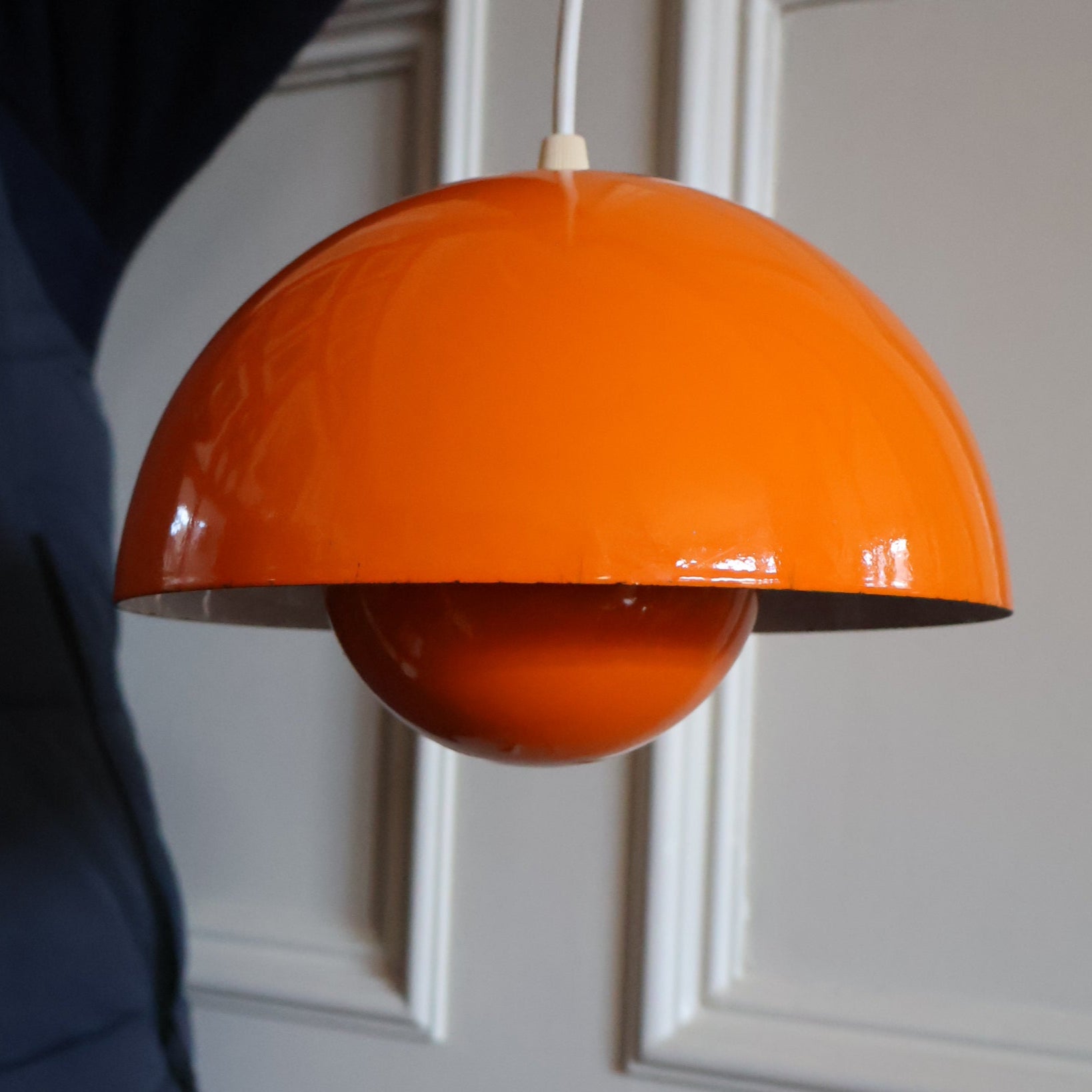 Genuine Vintage DANISH 1960s VERNER PANTON Pendant "Flowerpot" Metal Lampshade. Tangerine Enamel Finish