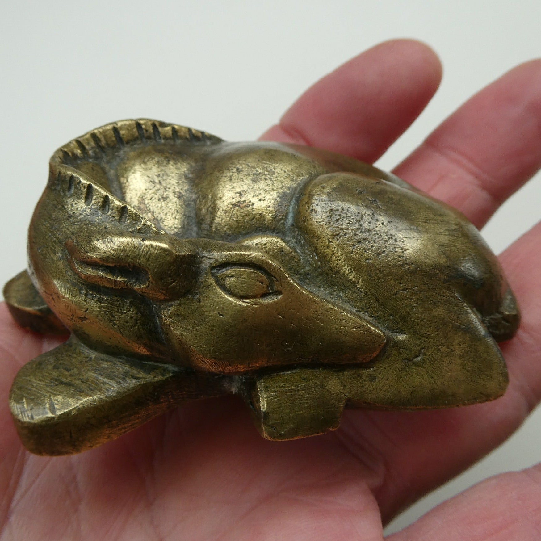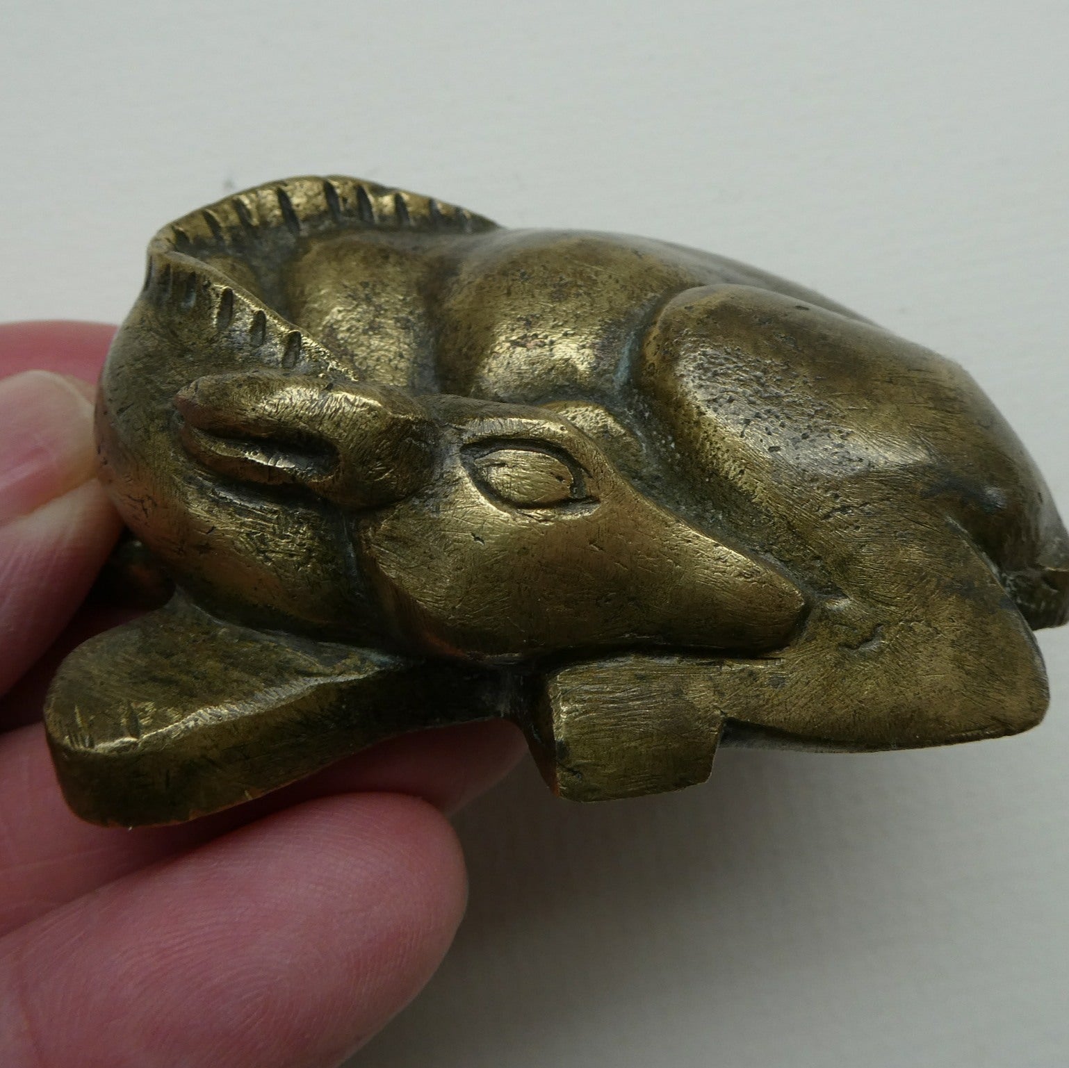 This is a rare little Art Deco Bronze desktop sculpture or metal paperweight - which takes the form of a reclining deer or fawn.