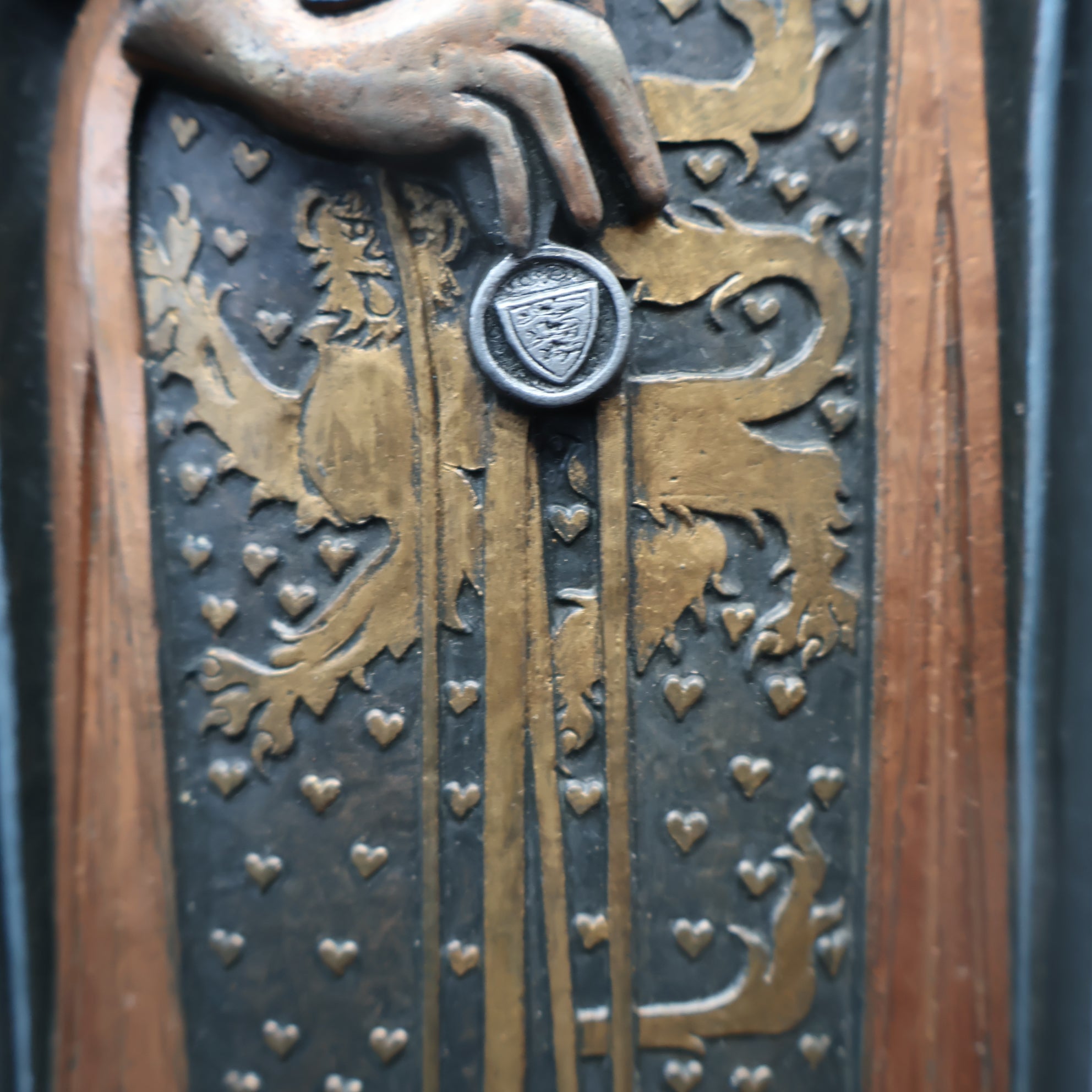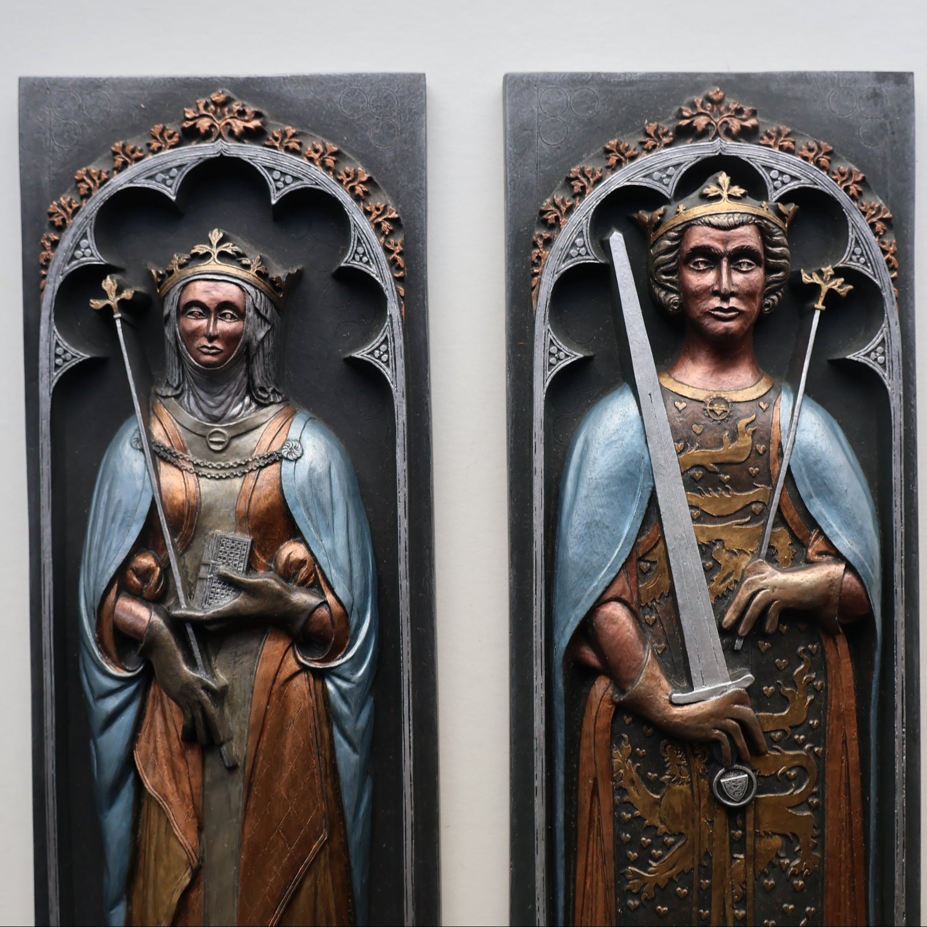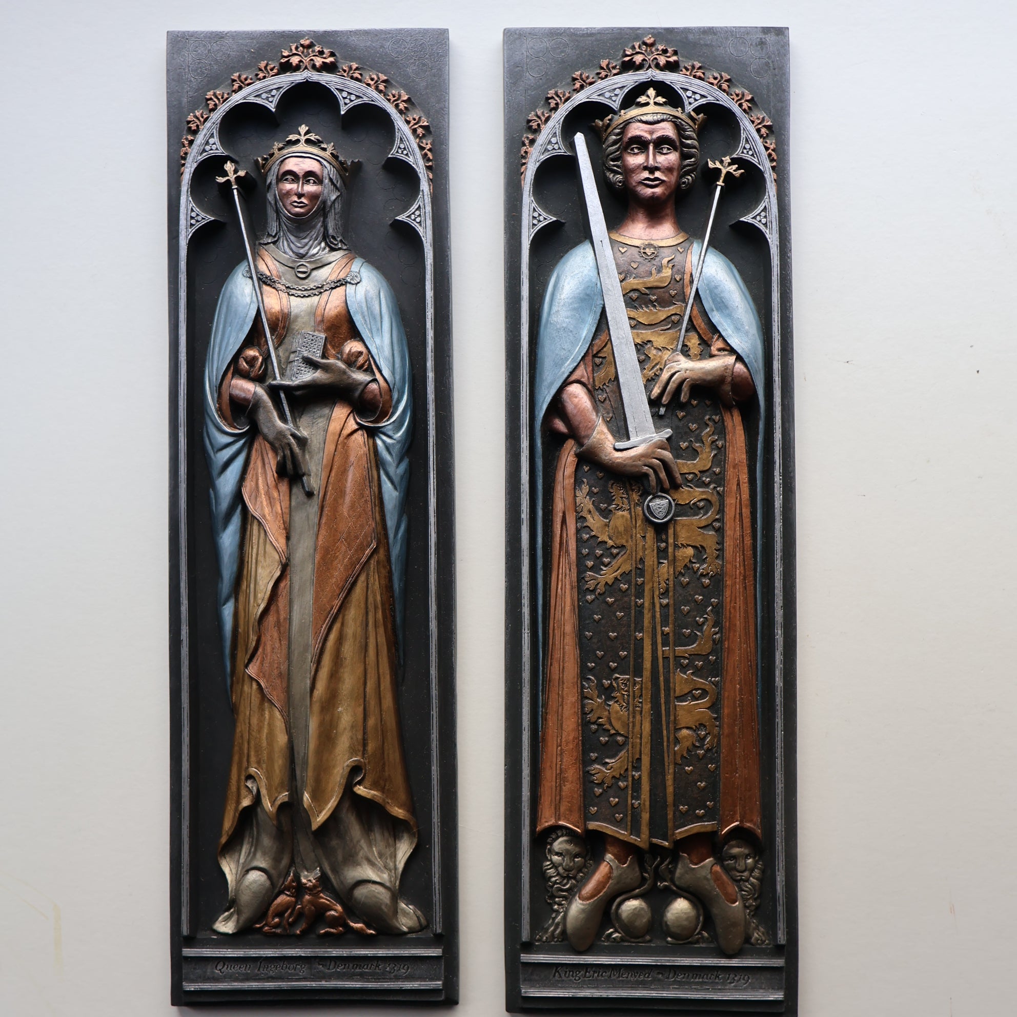 These figures take the form of a pair of plaques that show images of Queen Ingeborg of Denmark (1277 - 1319) and her husband, King Eric VI Menved (1274 - 1319).