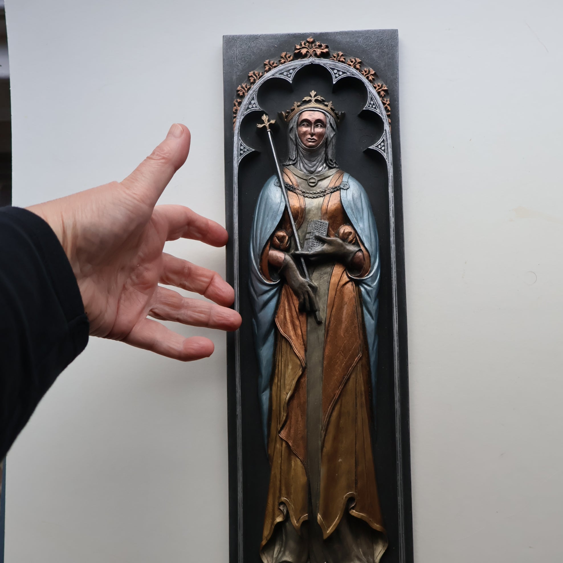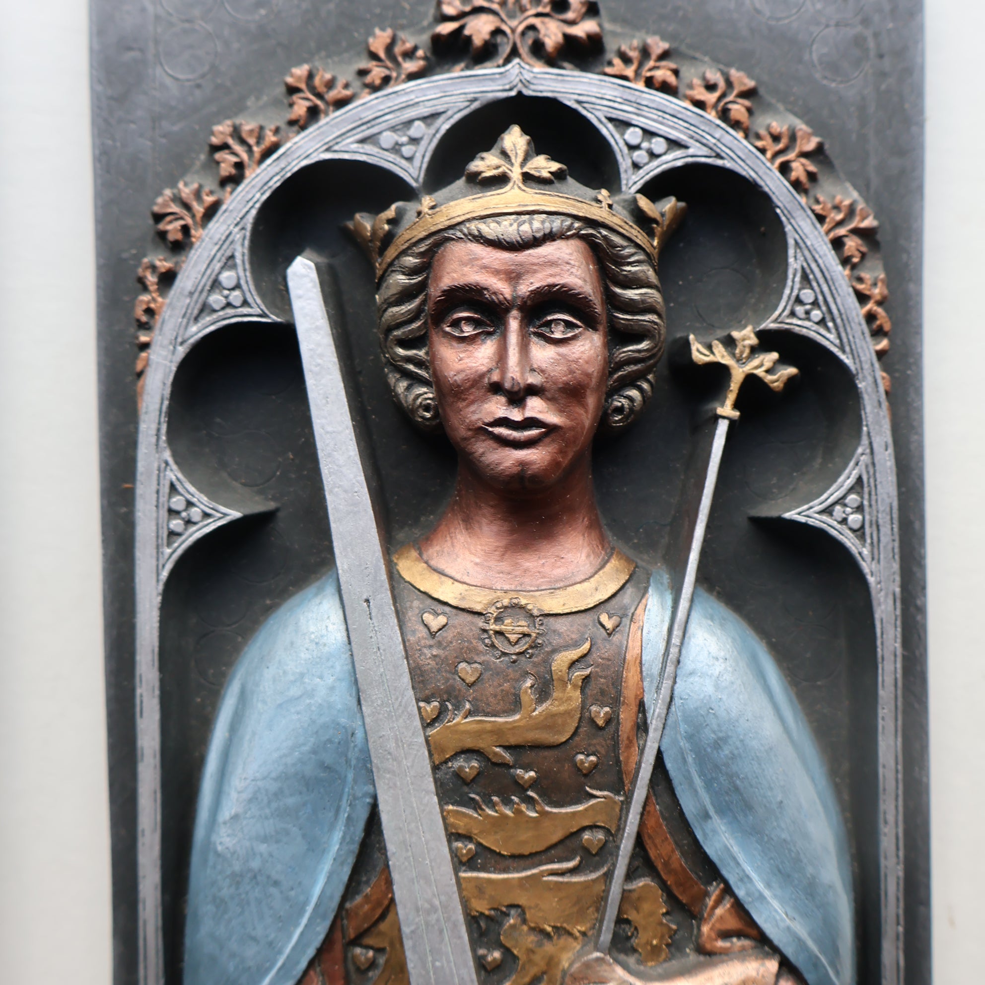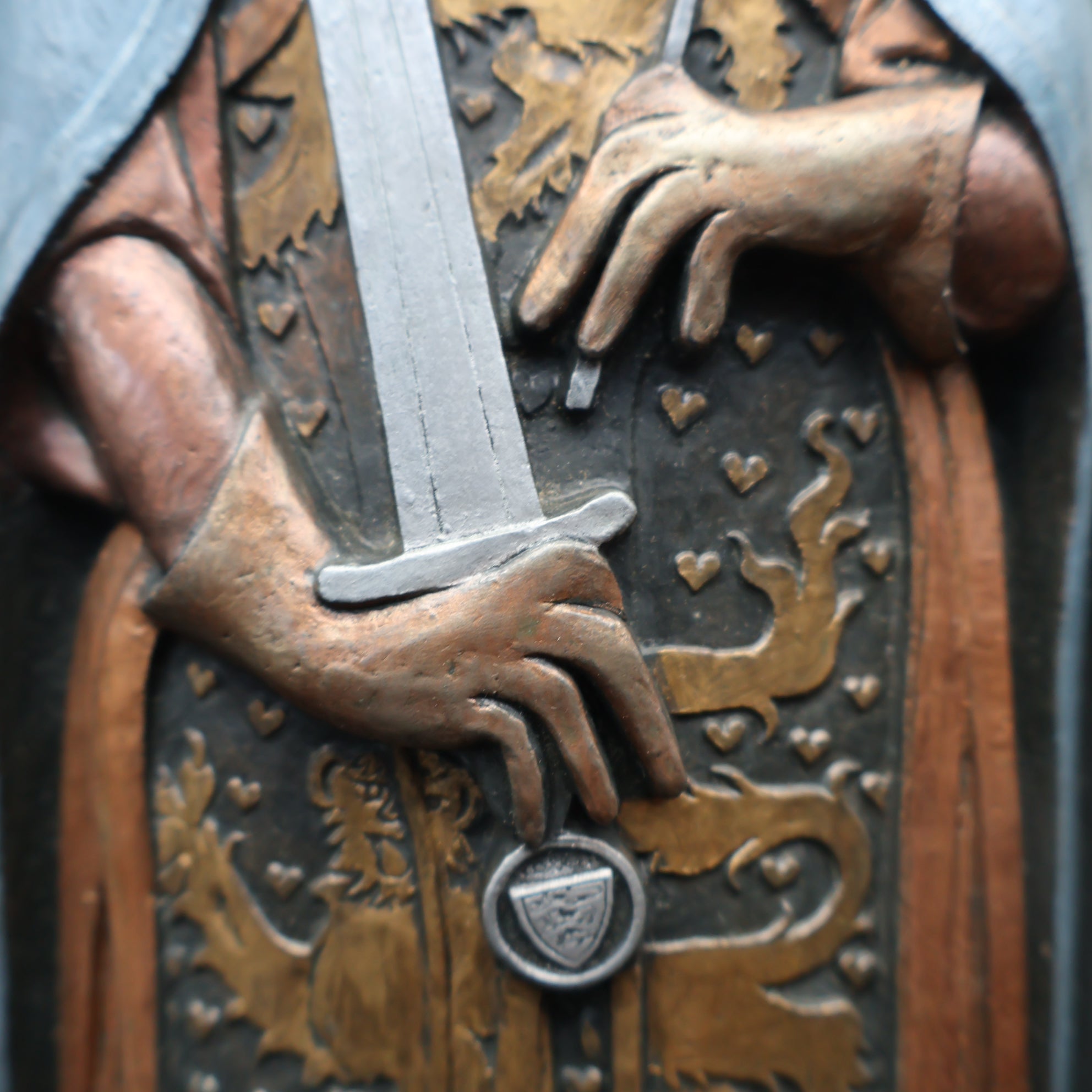 These figures take the form of a pair of plaques that show images of Queen Ingeborg of Denmark (1277 - 1319) and her husband, King Eric VI Menved (1274 - 1319).