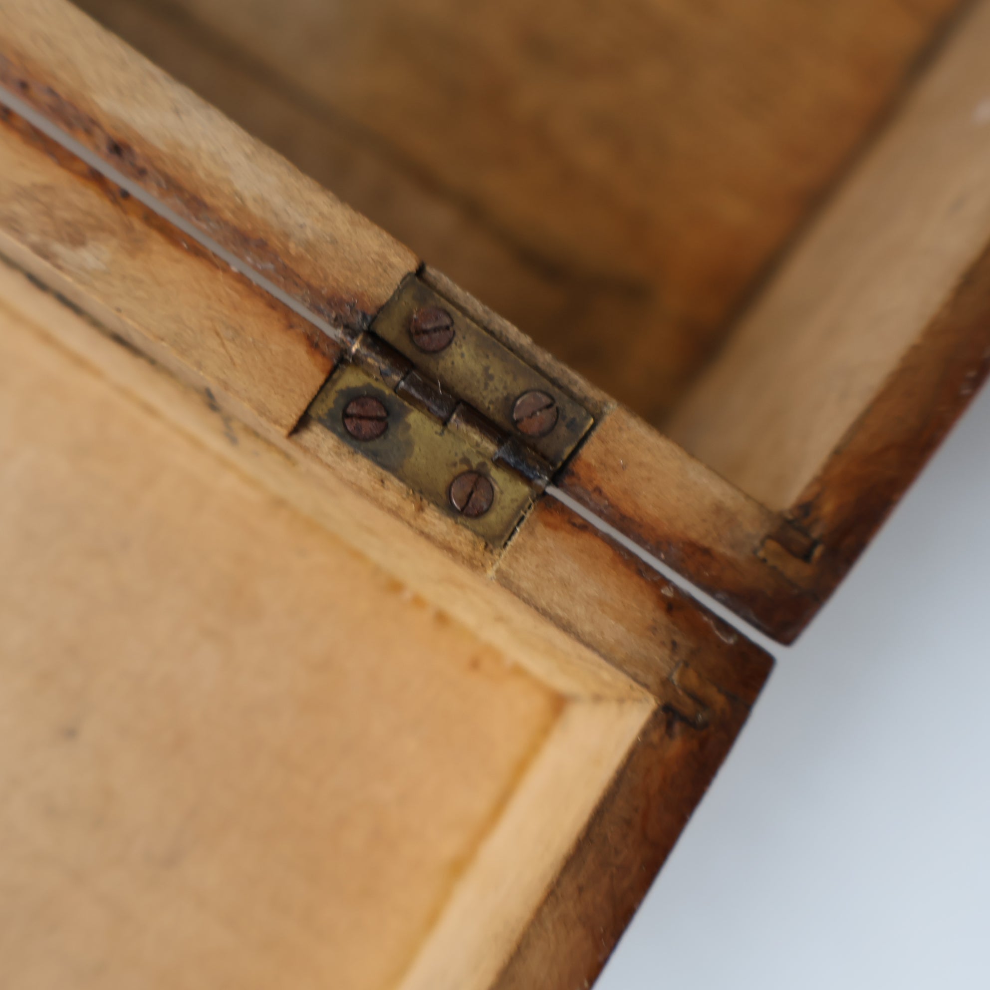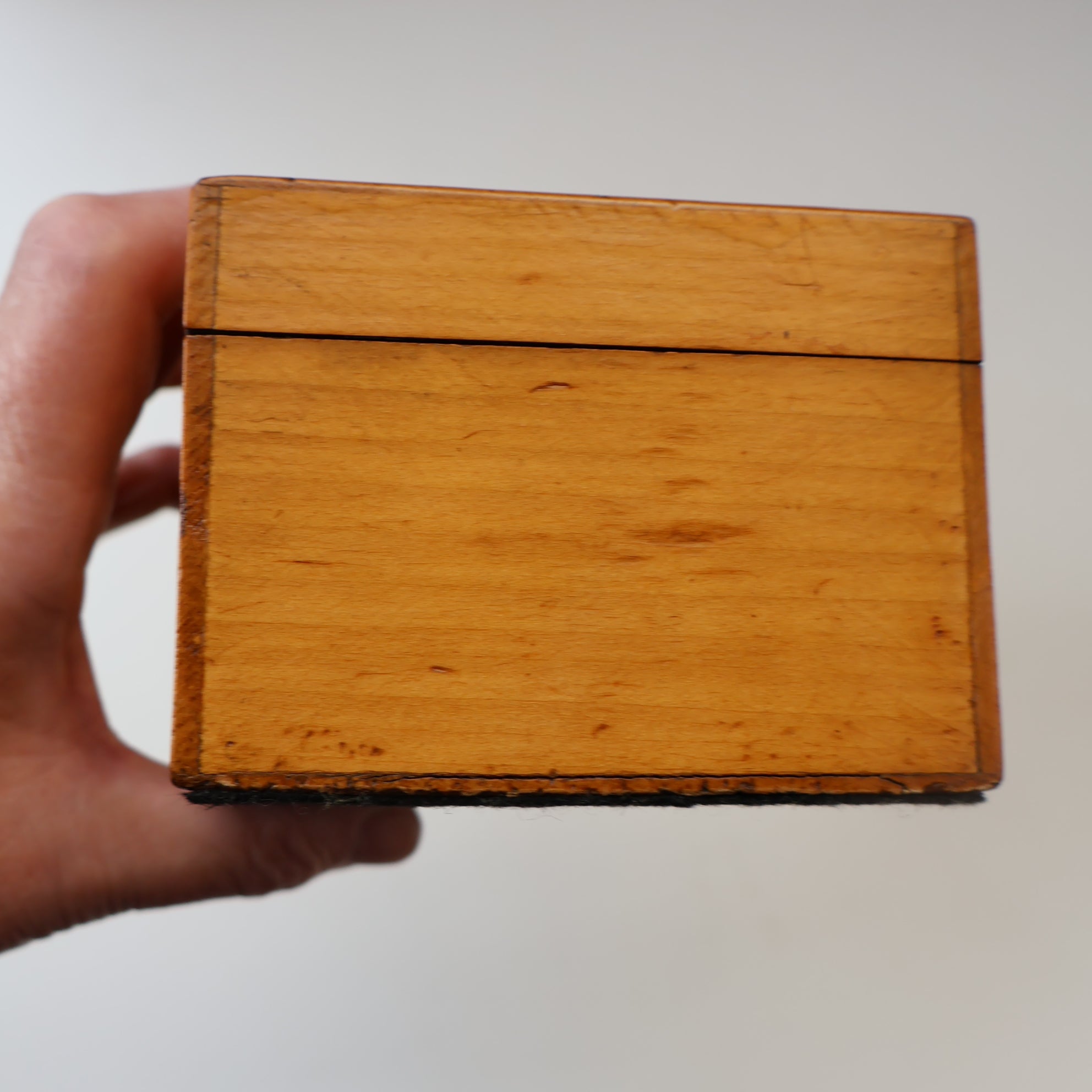 My little box / bank looks good on display - but sadly has some condition issues. The image on the top of the box is nice and clean with no scratches, losses or damages. The image remains attractive and clean after nearly 140 years. The wood is still a nice honey colour - there is a spilt along the wood on the base and the wood inside it slightly discoloured. The lock key is missing to the box no longer locks. There is a later piece of black felt on the base - to stop the box from scratching your furniture. But hey! dont let me put you off - you wont find another one easily, and I have taken lots of images for you to assess the condition.