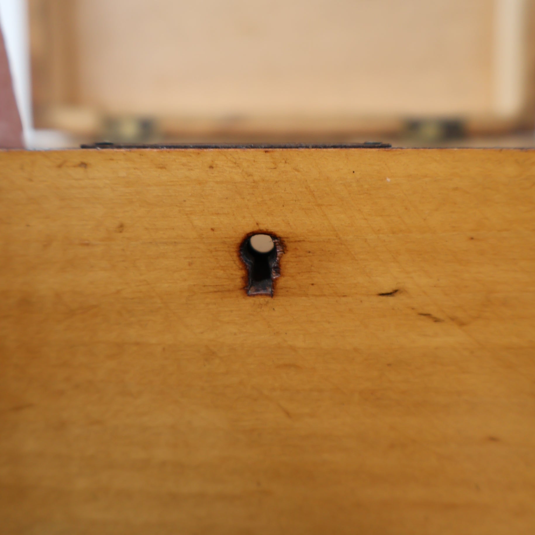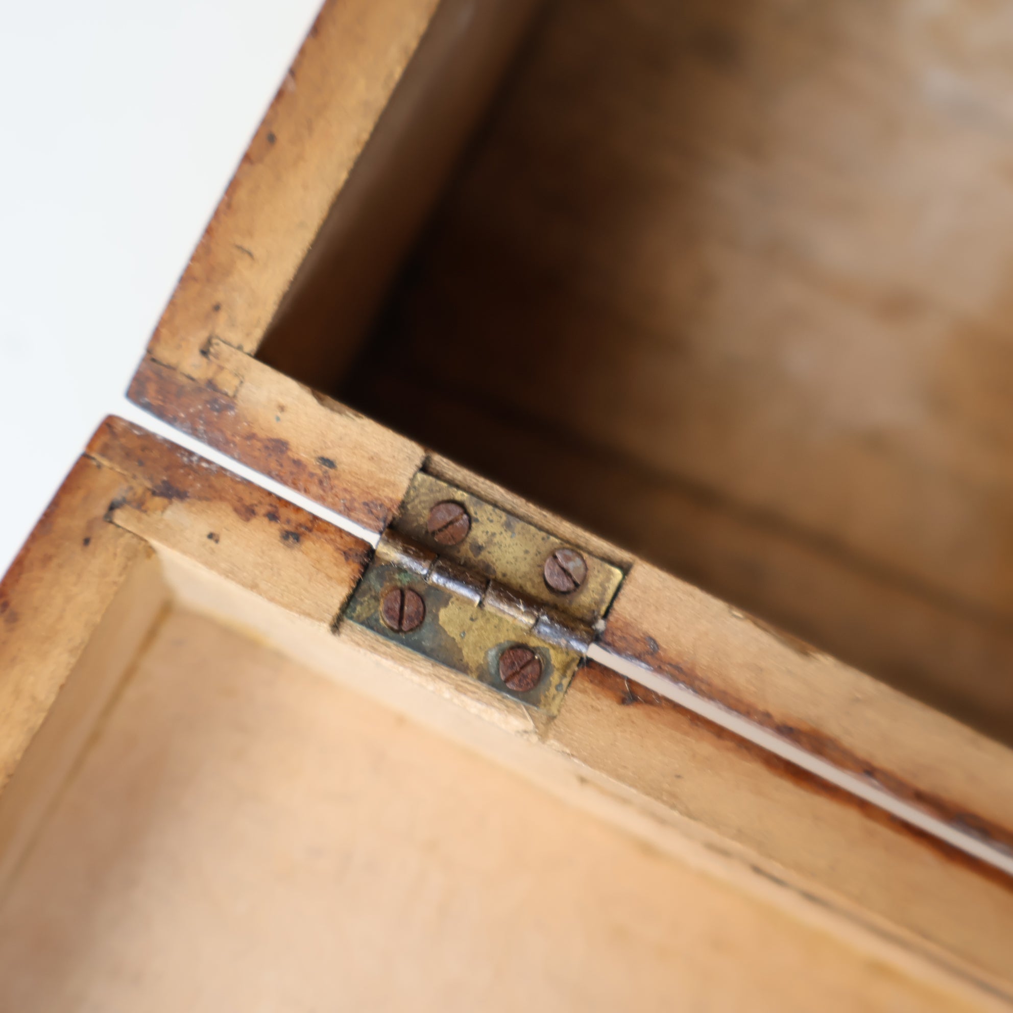 On offer here is a rarer honey-toned wooden box. It is of a larger size and would have be used to store like keepsakes or trinkets in. These larger boxes are hard to find - and ones that are souvenirs from the 1886 Edinburgh International Exhibition are even rarer! This one would be used as a box - but it was originally designed as a money box - with a slot for your coins at the back - and a little lock at the front so your money was kept safe.