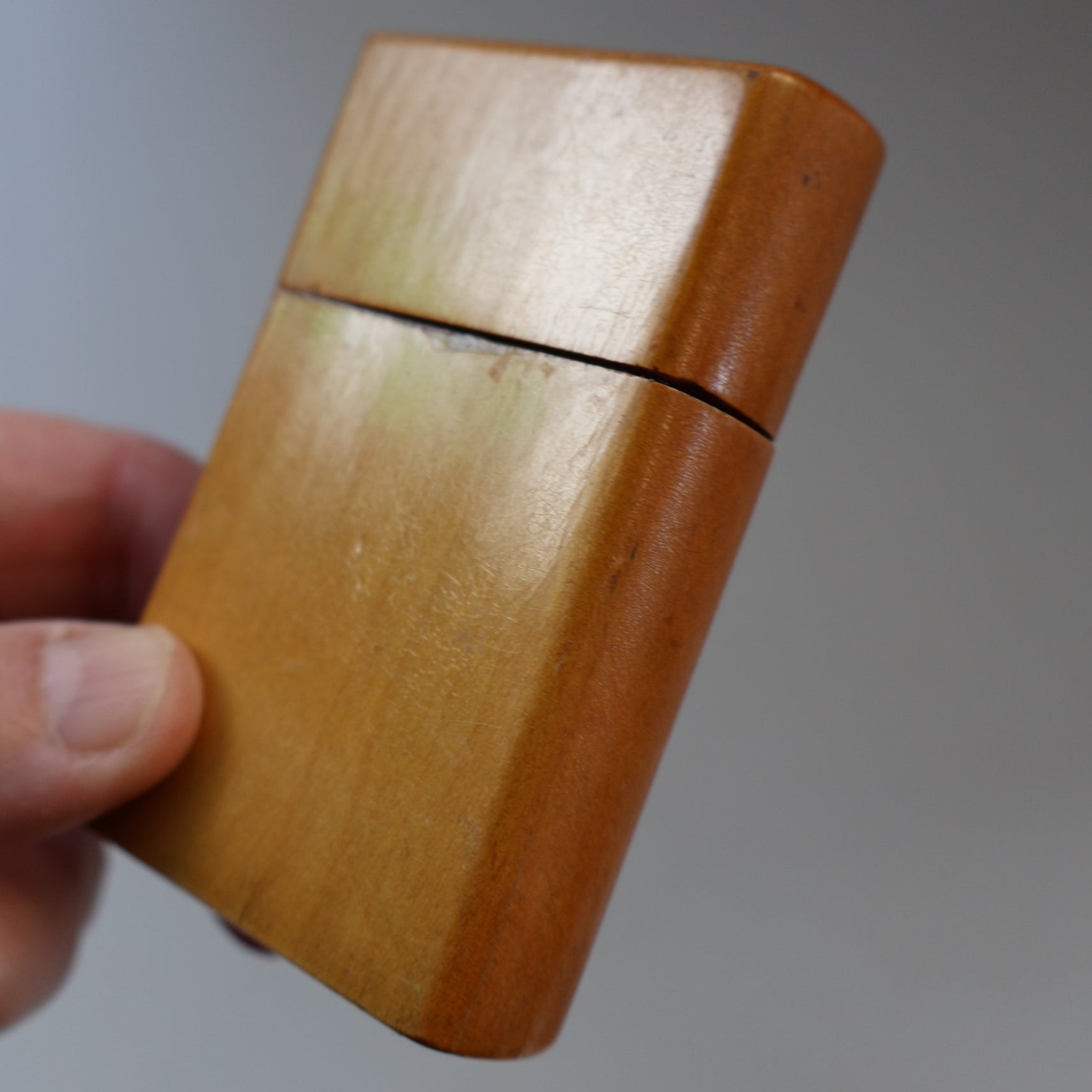 It is in lovely condition - nice and clean. The wood is a rich honey colour. These little wooden vestas in the shape of a week book are rare survivors, especially in this lovely condition.