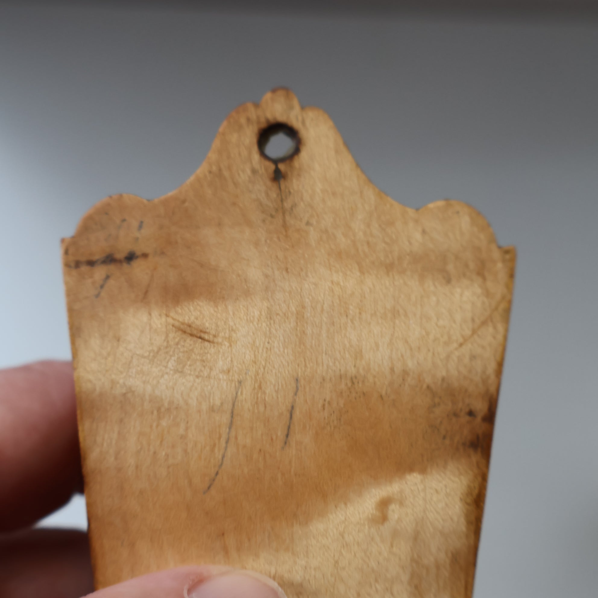 The wall pocket is in good antique condition with an attractive patina to the wood outside. There are no cracks or losses to the wood or the images.