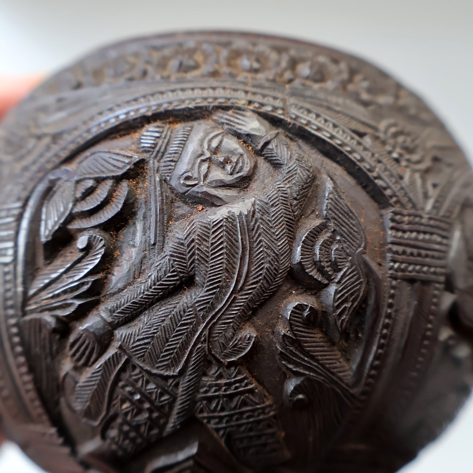 This is a nice item to add to you collection of carved coconuts or antique Indian carvings.