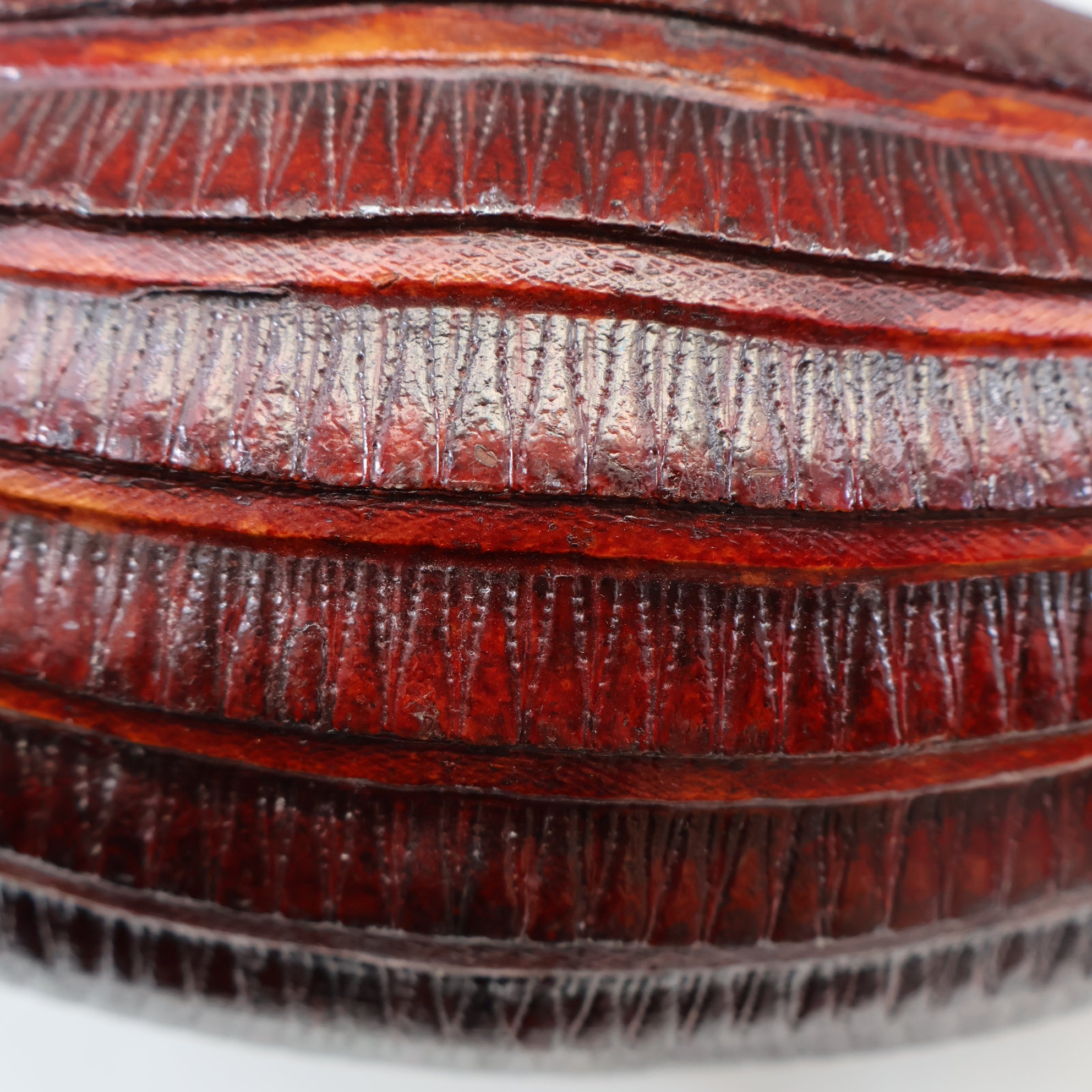 The bag is in good clean condition. The main body section is ridged along the bottom and round onto the back - the skin is nice and shiny and in excellent condition - no grubbiness or staining. No smells or anything else nasty.