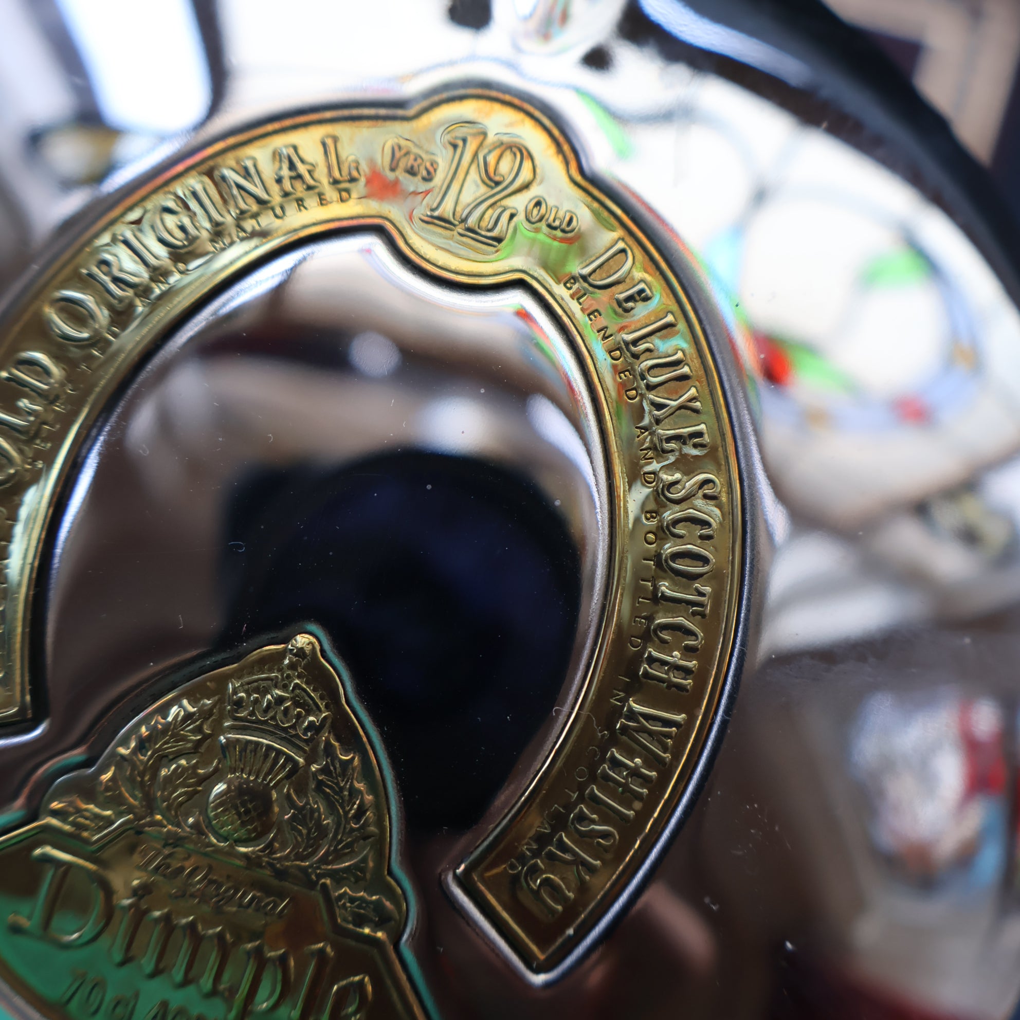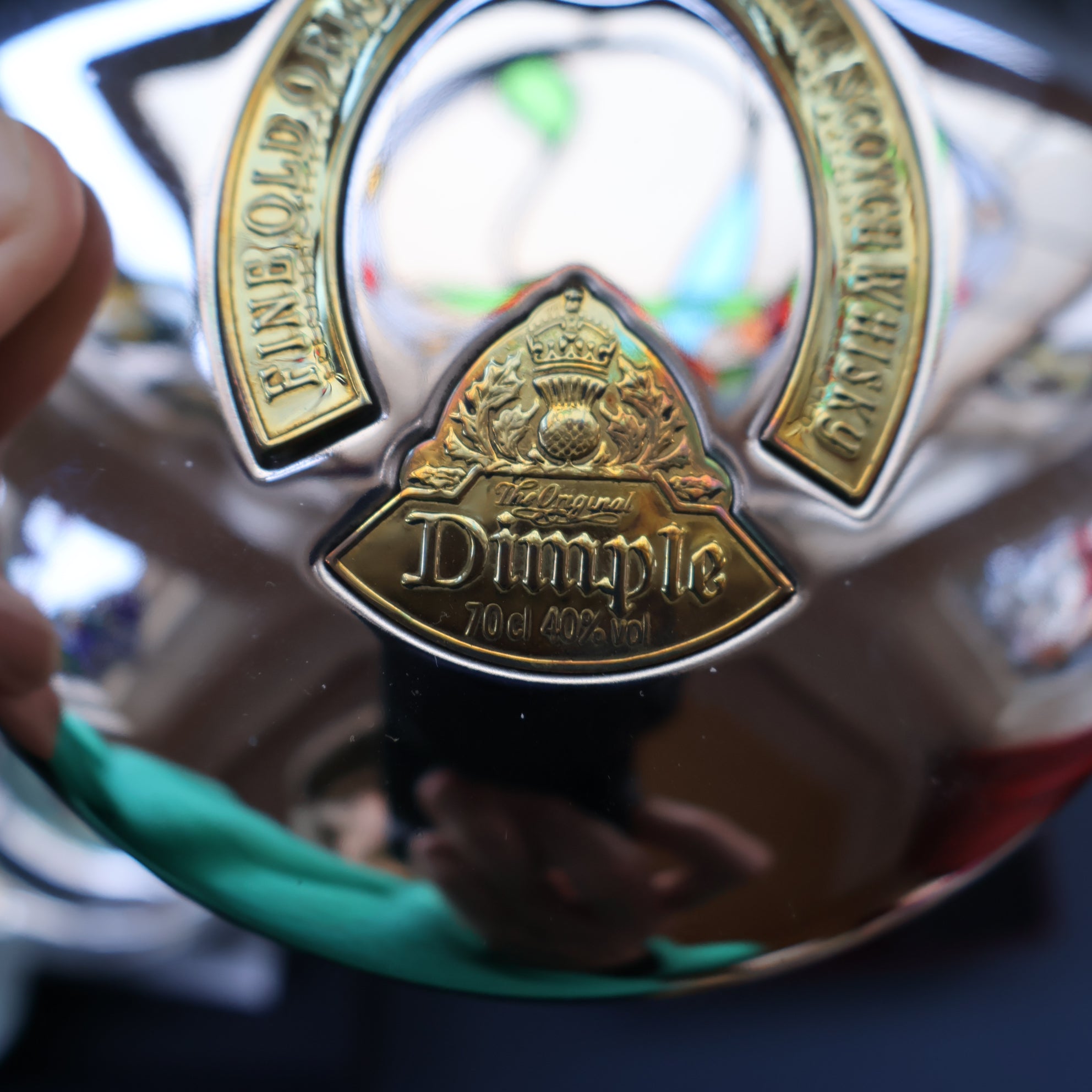 The other item is a handy little "The Original Dimple" hip flask. Again, it has never been used and is in pristine condition. In original box. The flask is circular but is flat - so that it can easily slip into a jacket pocket or little bag - to keep you ready with a quick wee winter warmer. It has a diameter of 4 3/4 inches. Height from base to the top of the stopper is 5 inches. The box is 5 1/2 x 4 3/4 x 1 inch. It is made of highly polished stainless steel. It has probably been made by Dalvey for Dimple Whisky. It is a harder to source item. I am listing it at only £25.