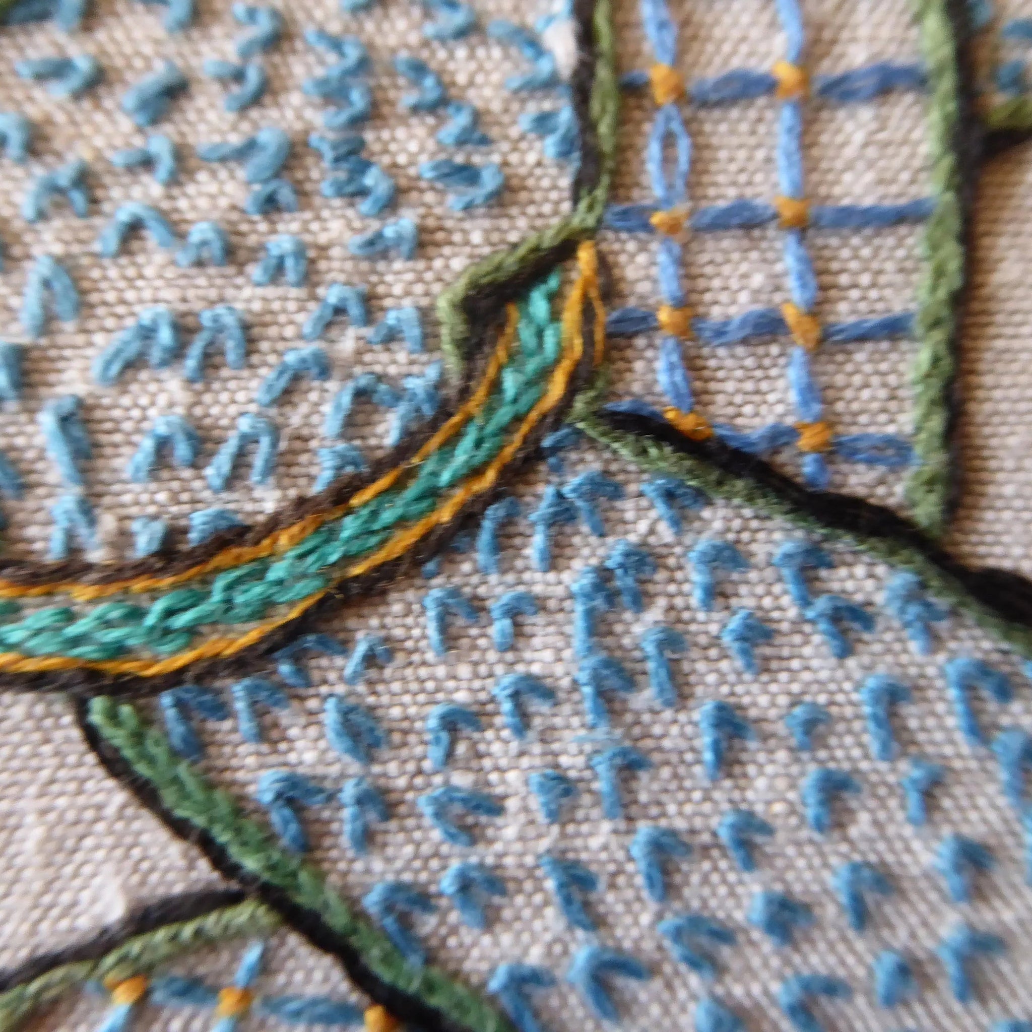 This beautiful embroidery relates to an image reproduced from a roundel in the Book of Kells and published by the father of the modern Celtic Revival, George Bain.