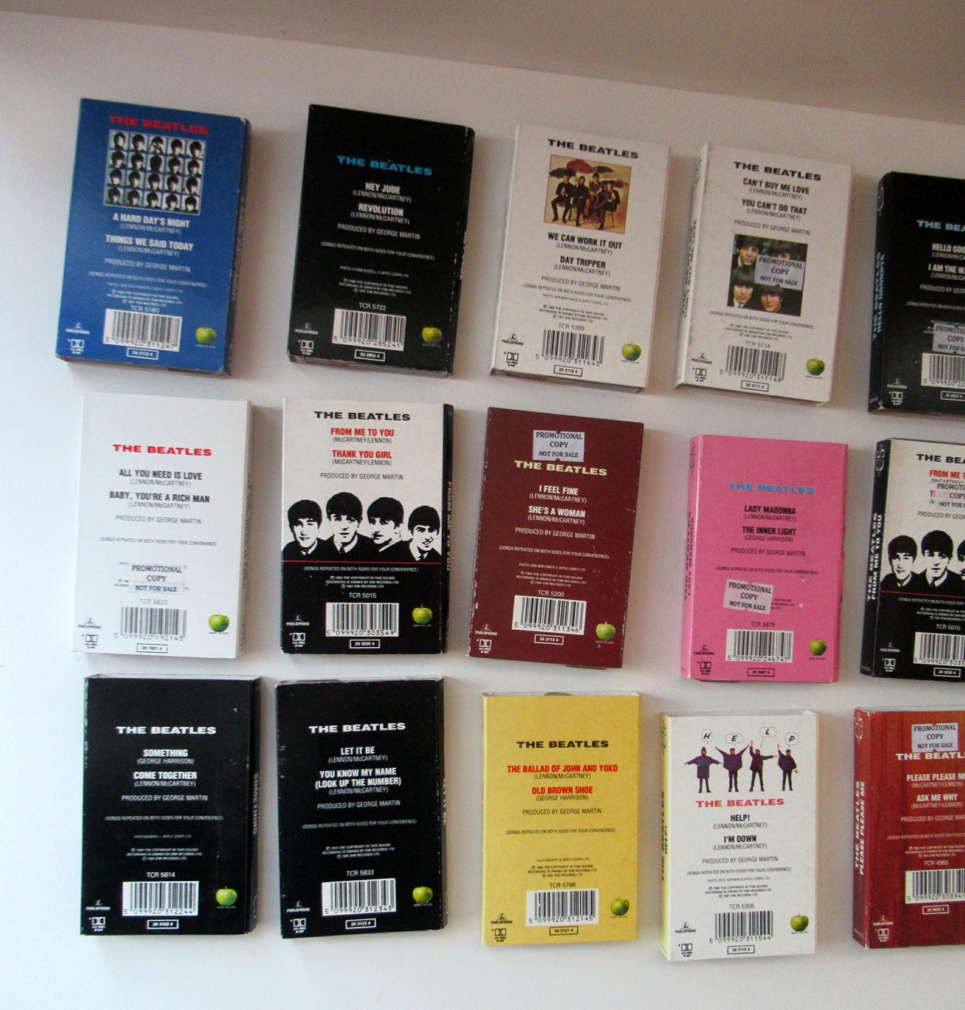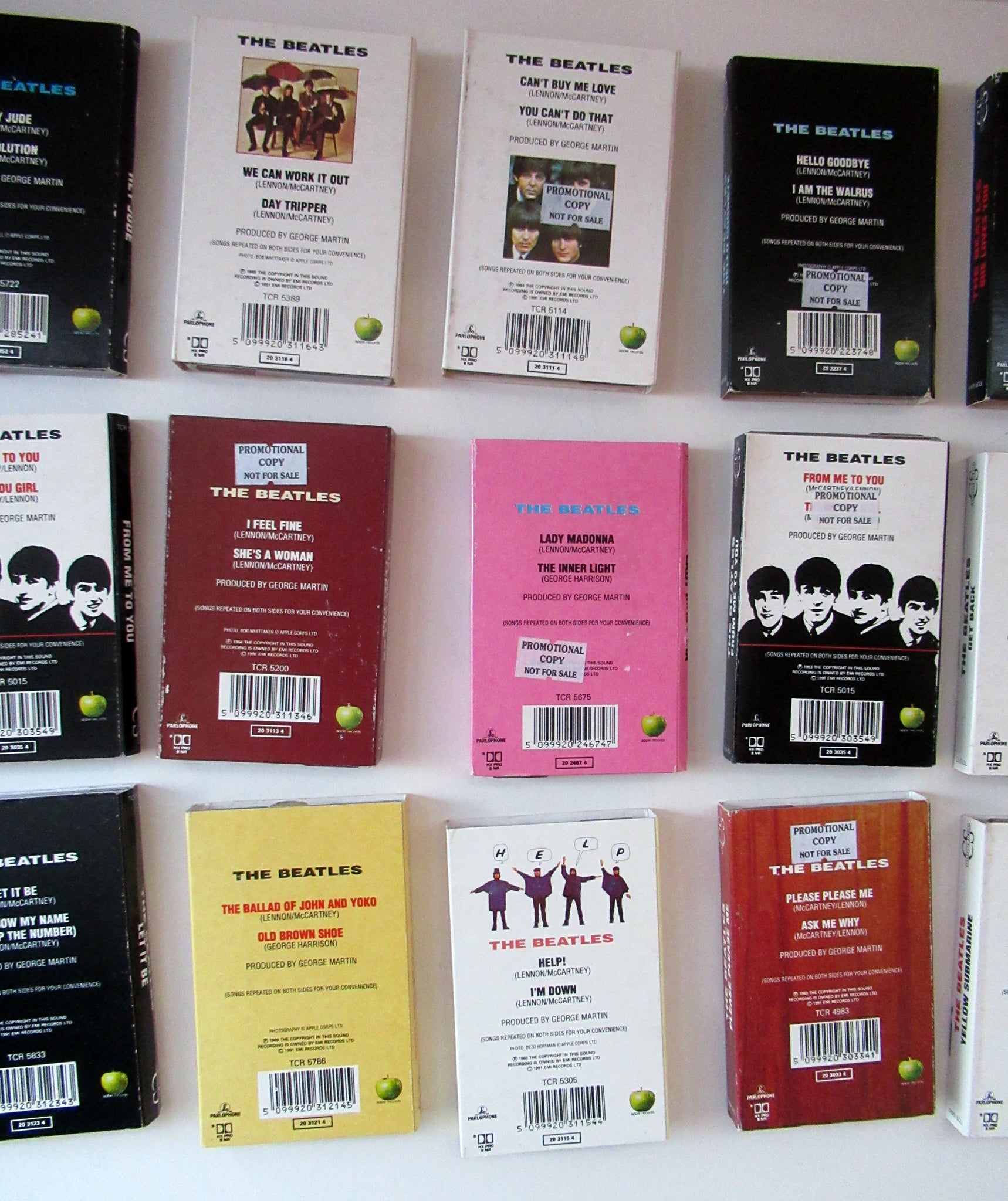 RARE Vintage 1991 Complete Set of 22 Beatles Singles: Each on a Single Cassette Tape. Excellent Condition.