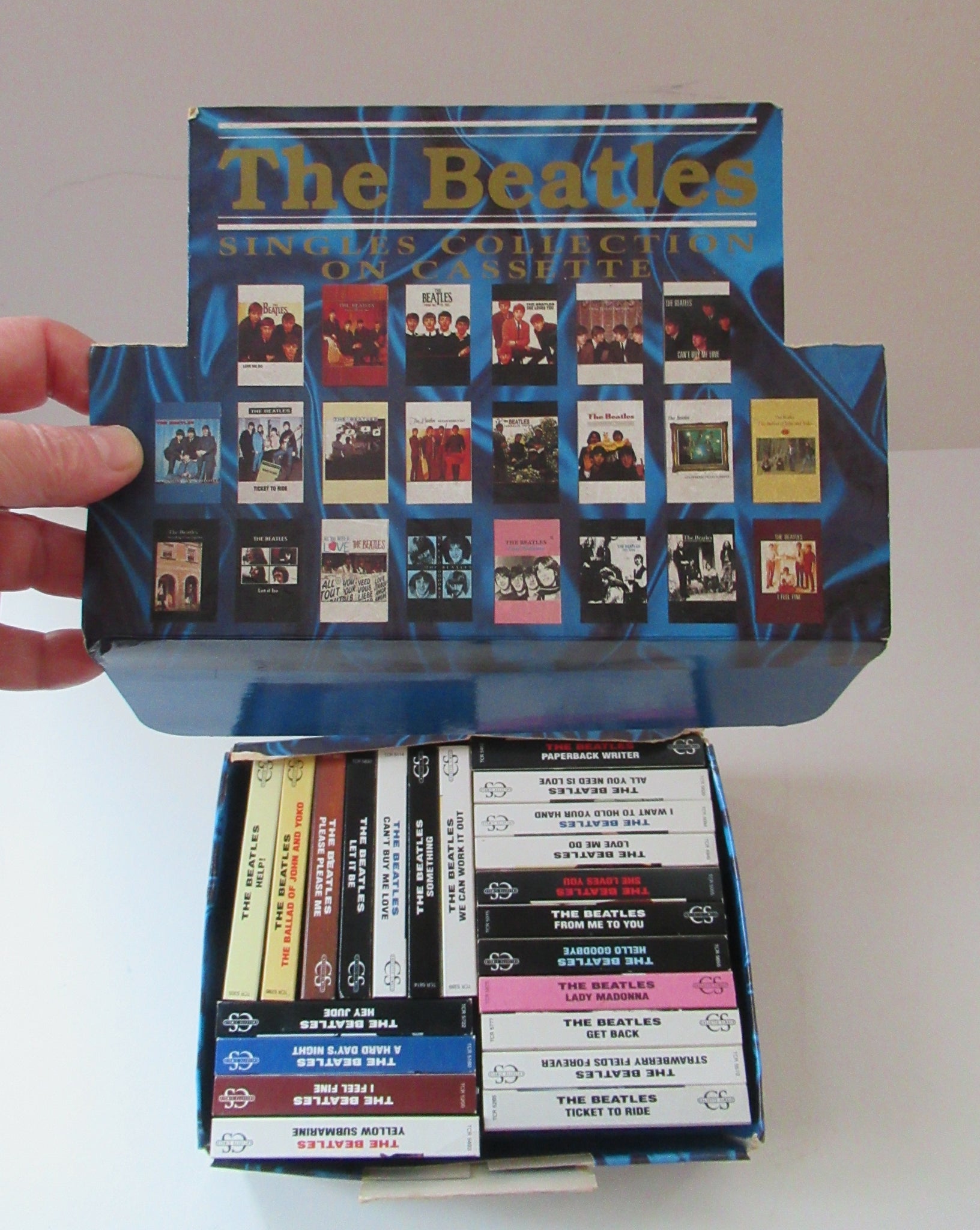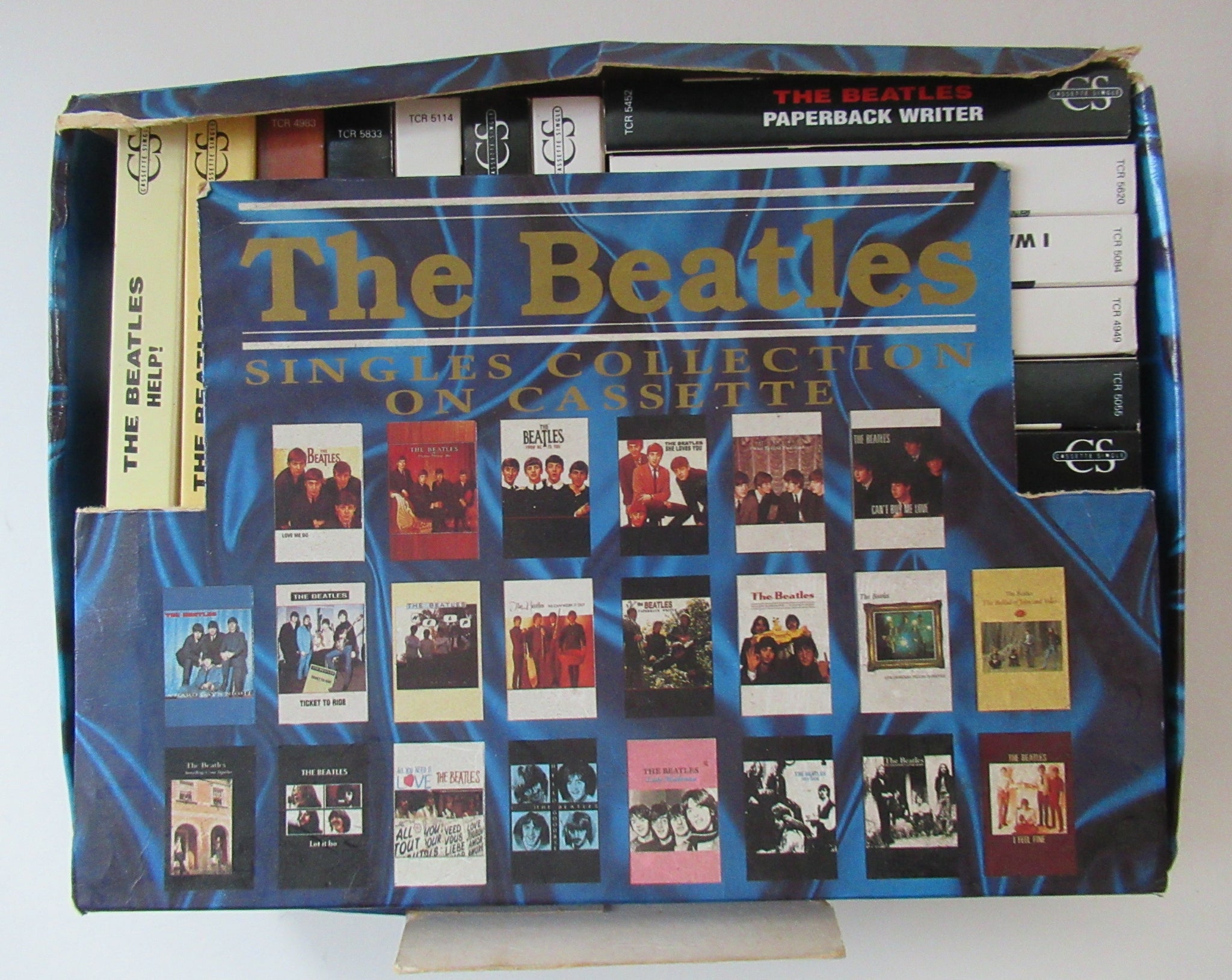 The set is in its original box - and it is the complete set of 22 single cassette tapes - which would have been released over the years as singles by the Beatles - the cassette has the singles A and B sides on each side of the cassette tape.