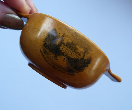 Antique 19th Century MAUCHLINE Ware Miniature Scottish Drinking Quaich. With Image of Inveraray Castle