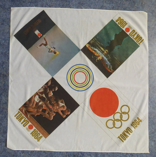 RARE 1960s Olympic Games Souvenir Head Scarf. Genuine Original Toyko Olympic Games 1964. KAMEKURA YUUSAKU Design